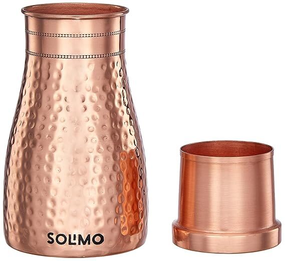 - Solimo Copper Water Pot | Bedside Pot with Glass | Hammered Finish |950 ml