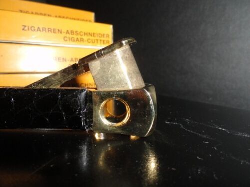 - Solingen Germany Gold and Black Leather V-Cut cigar cutter and box opener NIB