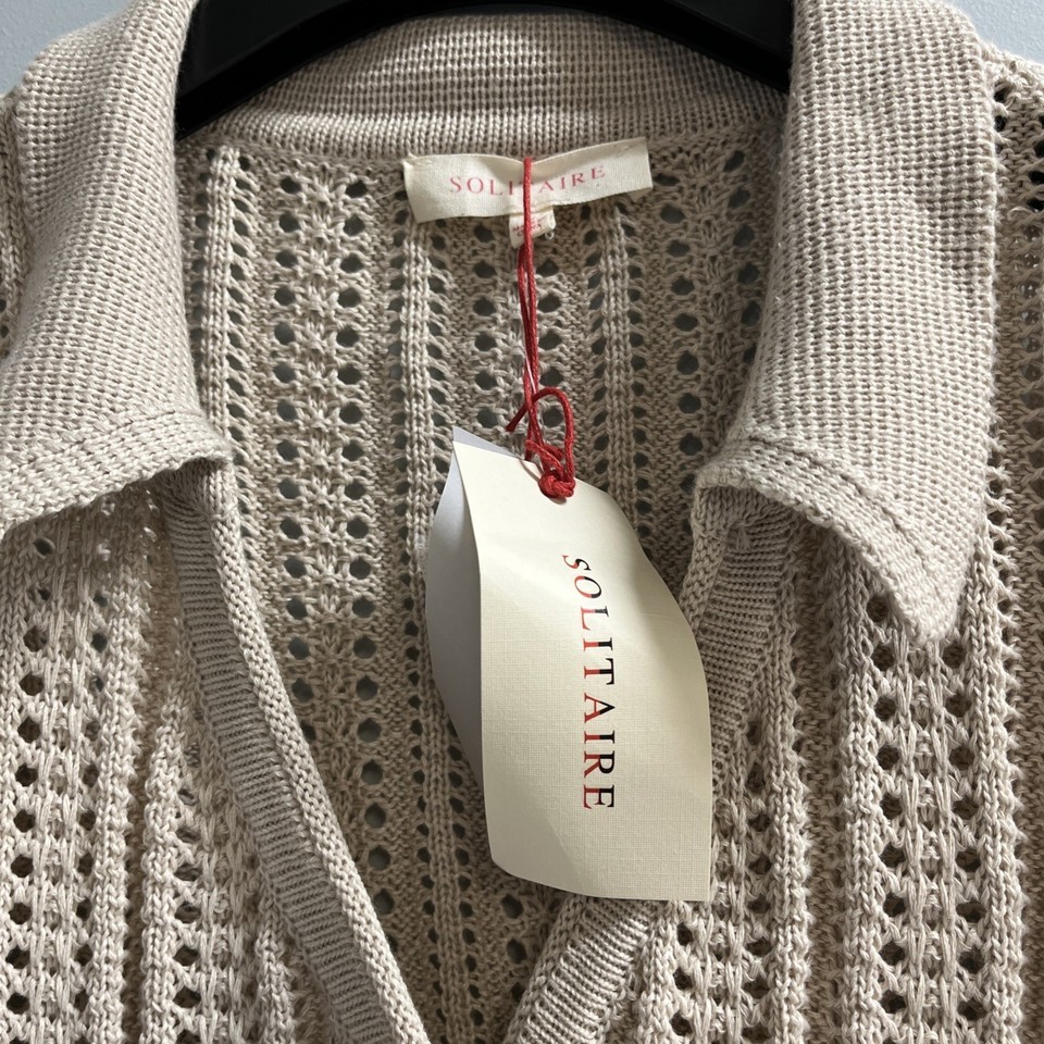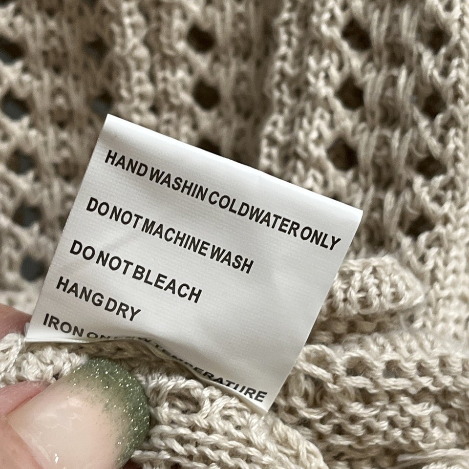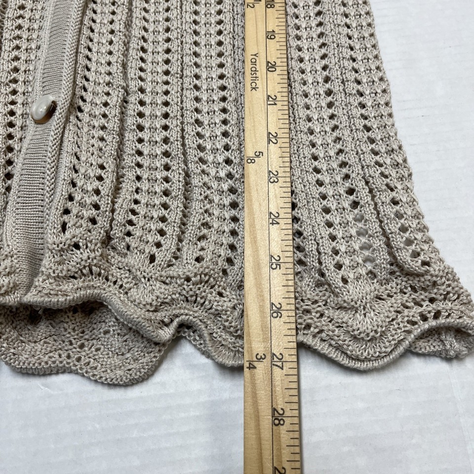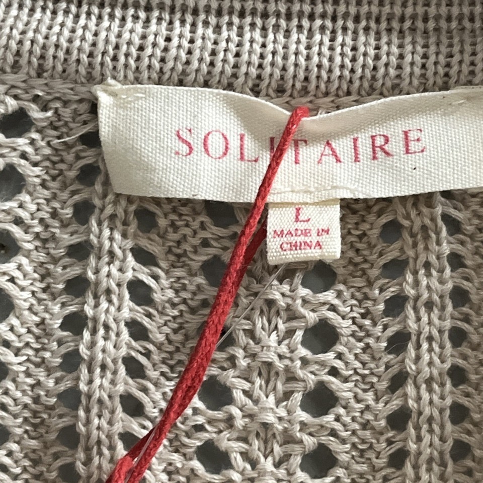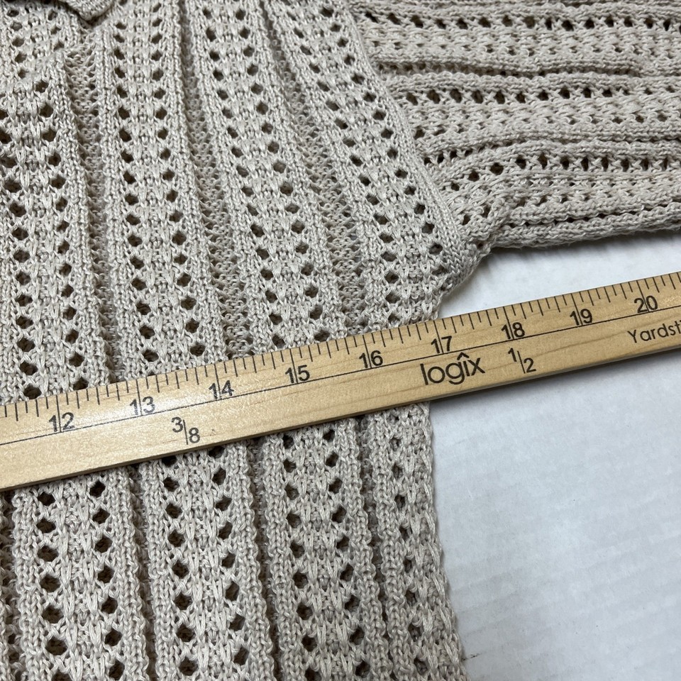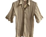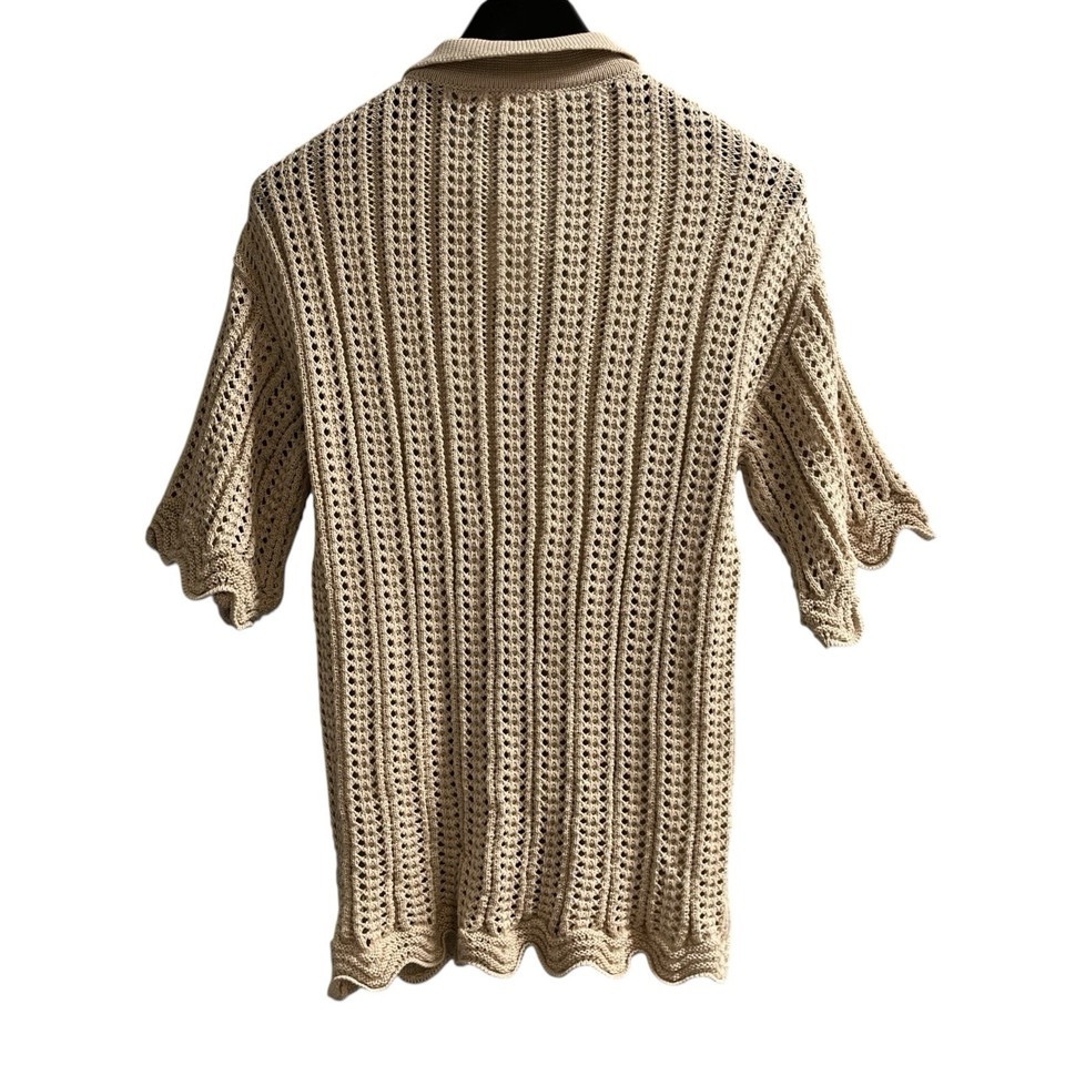 - Solitaire Sweater L Beige Crochet Open Knit Short Sleeve Layer Boho Hippie Beach