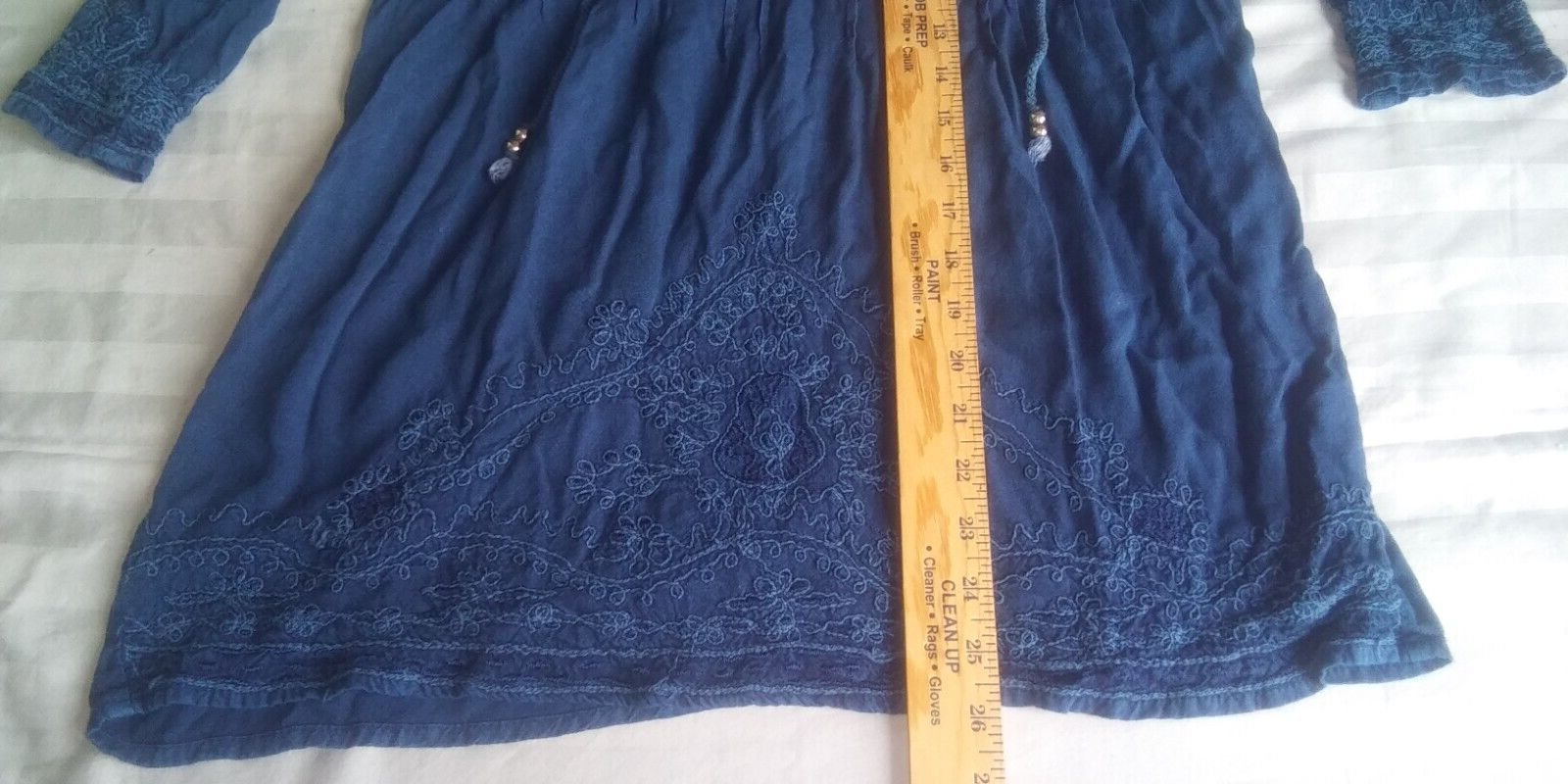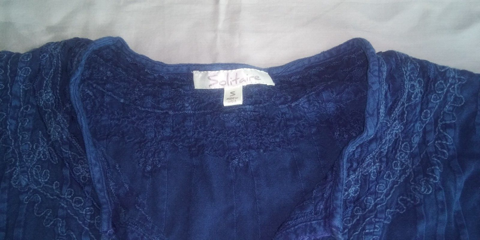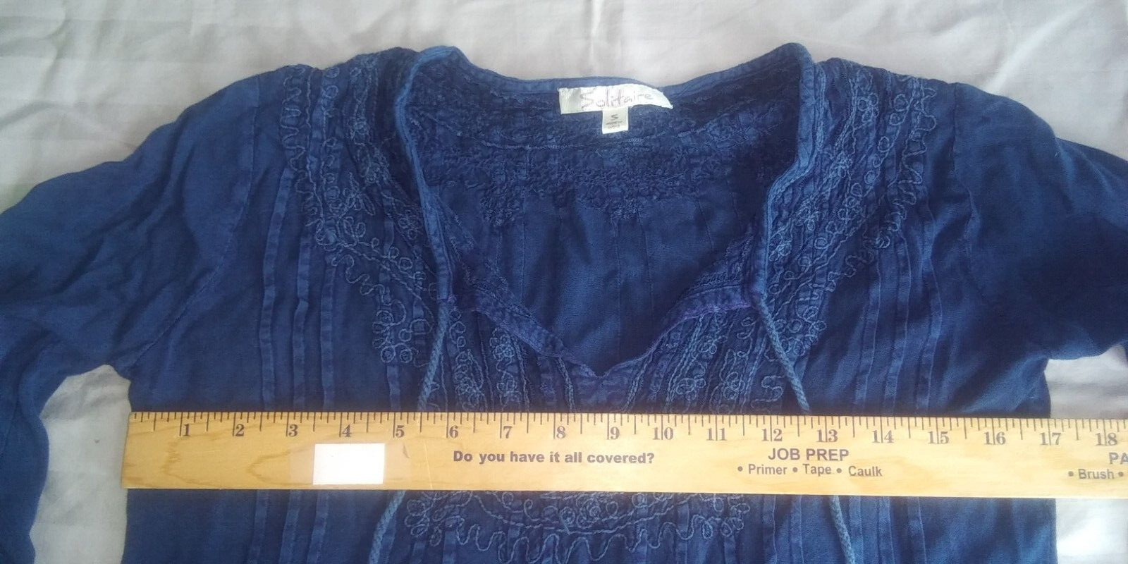 - Solitaire Women Navy Embroidered Floral 3/4 Sleeve Top Size S Boho EUC