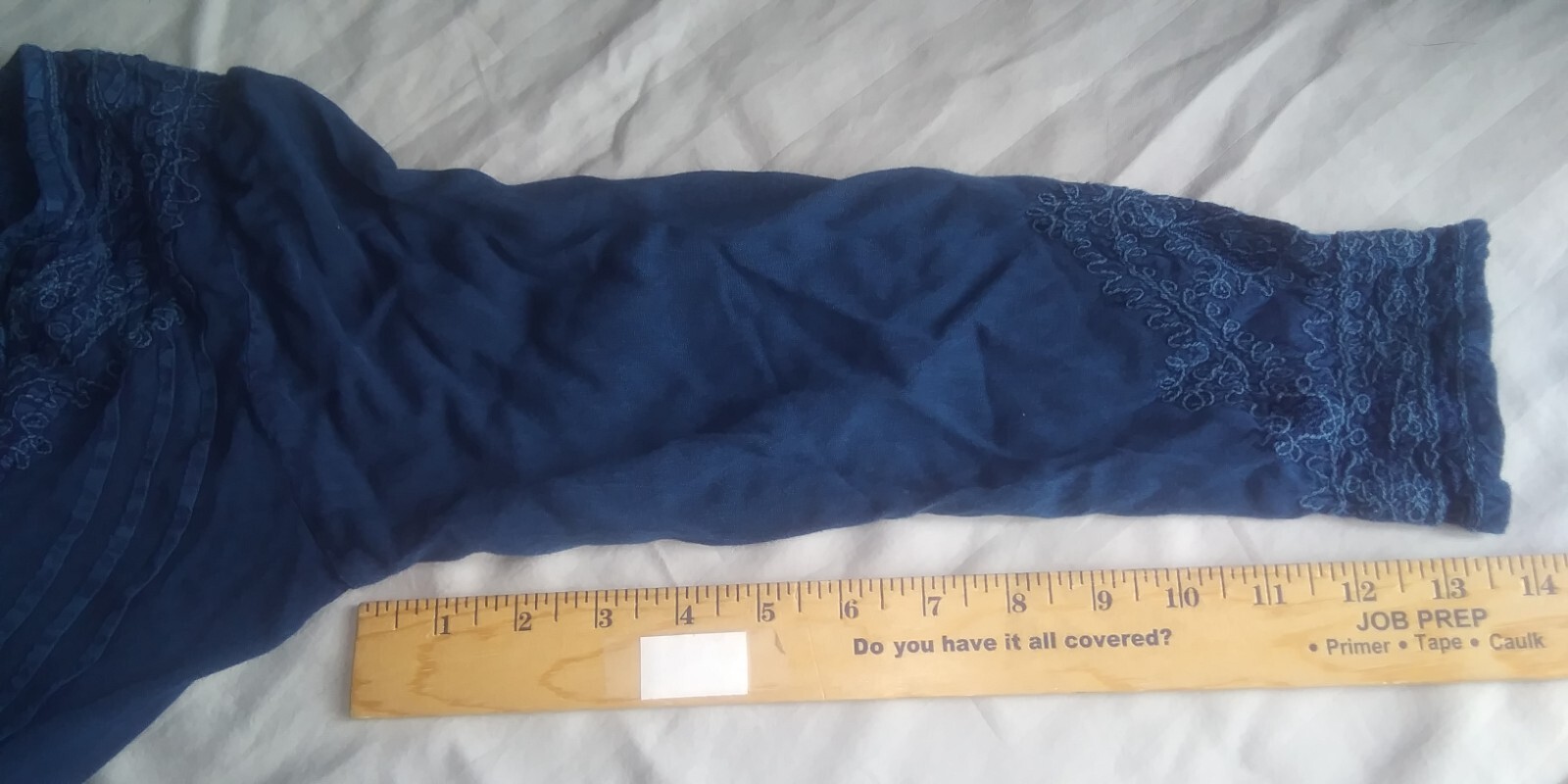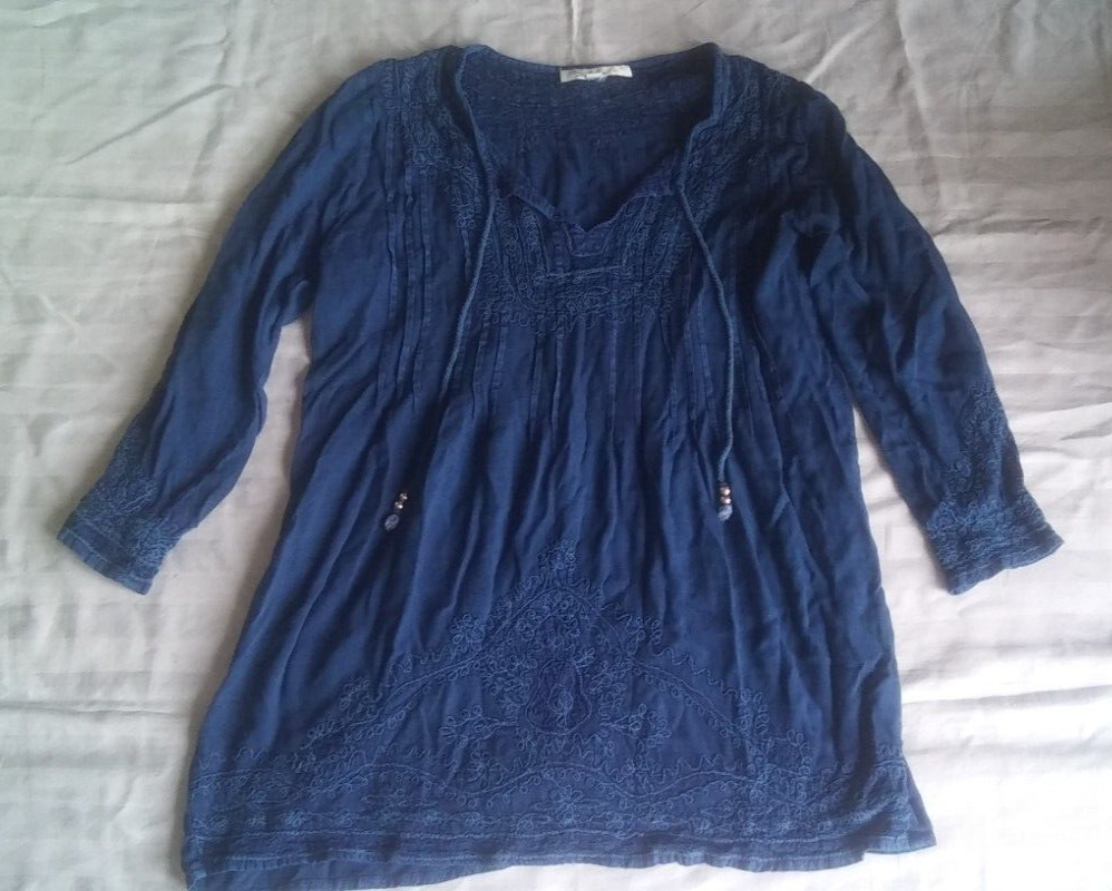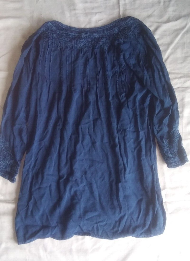 - Solitaire Women Navy Embroidered Floral 3/4 Sleeve Top Size S Boho EUC