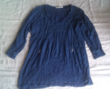 Solitaire Women Navy Embroidered Floral 3/4 Sleeve Top Size S Boho EUC