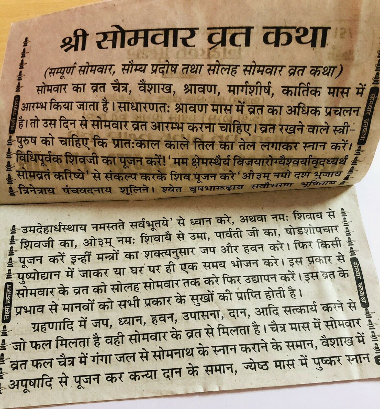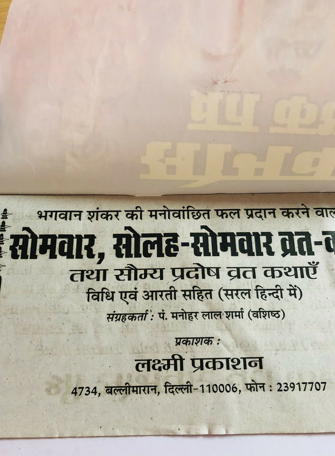 - Somvar(Monday) Solah Somvar Vrat Katha, Hindu Religious Hindi Book FREE SHIP