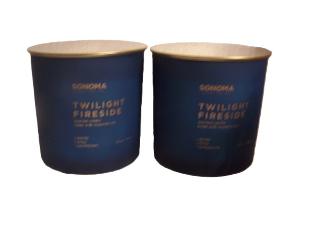 Lot of 2 Sonoma Twilight Fireside Scented Candles with Lids 13 oz each