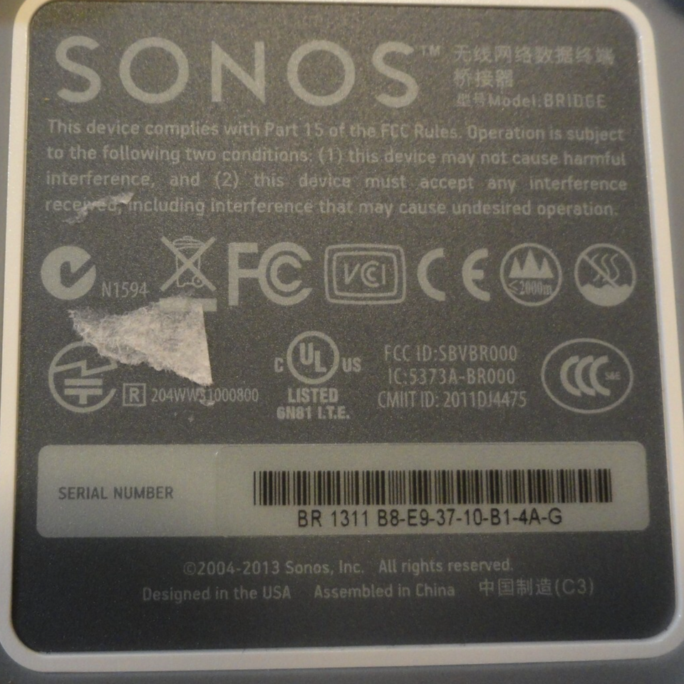 - SONOS BRIDGE WHITE Wireless HiFi System TESTED WORKS