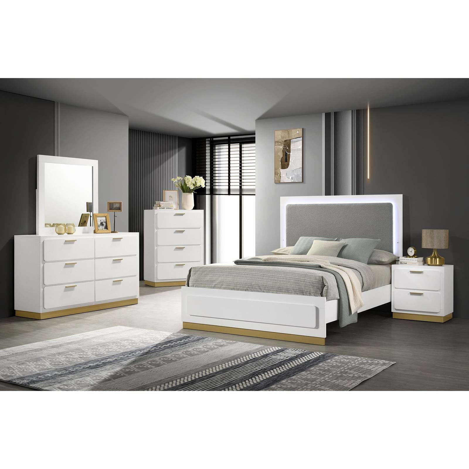 A bold black base paired with metallic gold accents creates a stunning contrast that enhances any bedroom decor