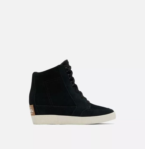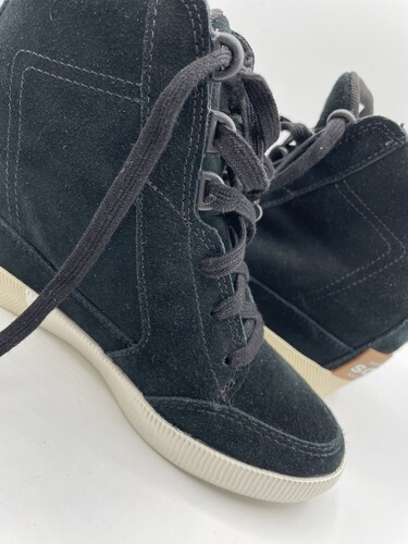 - Sorel Women sz 6 Black Suede Leather Out N About Wedge Bootie Ankle Boots B62