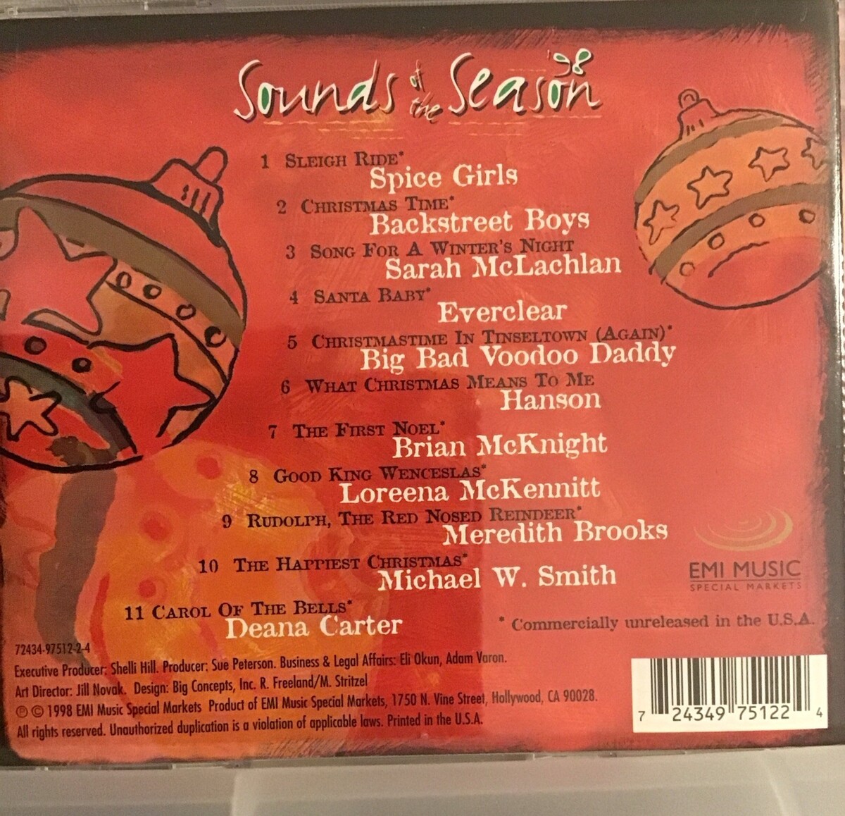 The "Sounds of the Season" Christmas Holiday Audio CD features various artists performing popular holiday songs in English. Released in 1998 by EMI, this compilation album comes in a standard jewel case and includes songs in the Christmas style. Perfect for the holiday season, this CD offers a collection of festive tunes from the 1990s era, making it a great addition to any Christmas music library.