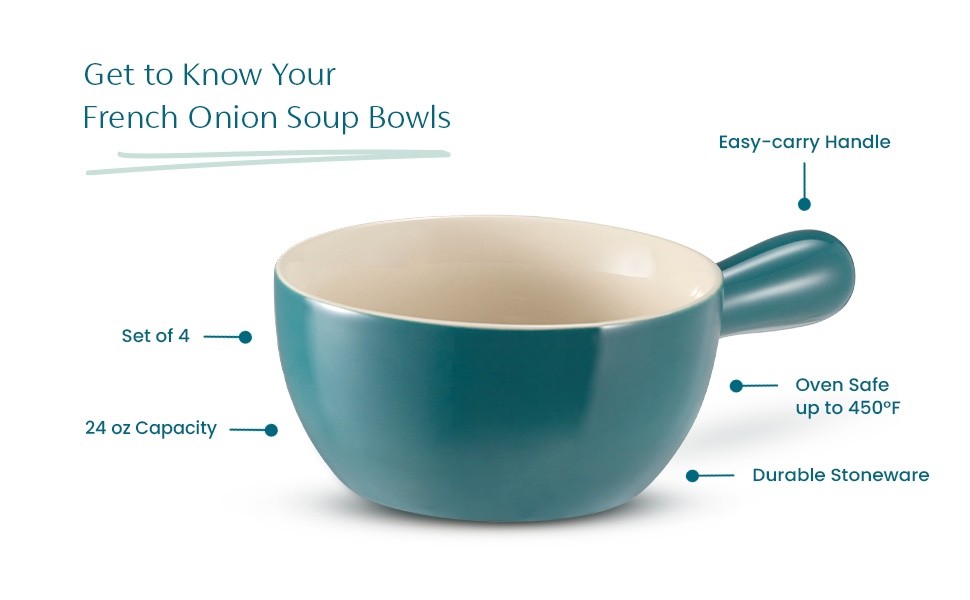 - Soup Bowls Handle Ceramic 24 oz Set of 4 Oven Microwave Dishwasher Safe 4 Colors