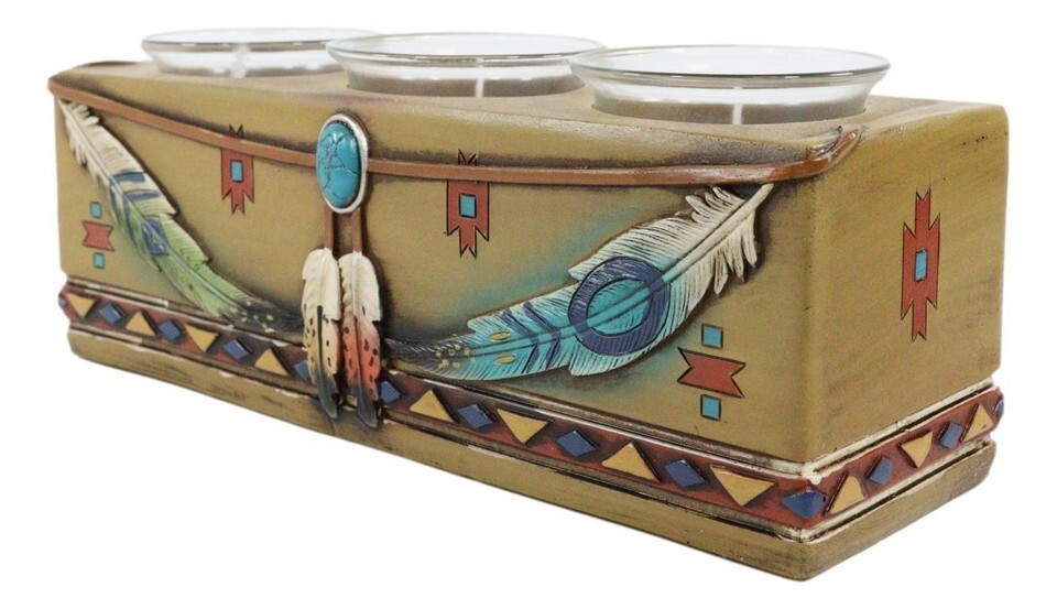 - Southwest Indian Navajo Vectors And Feathers Tea Light Votive Candles Holder