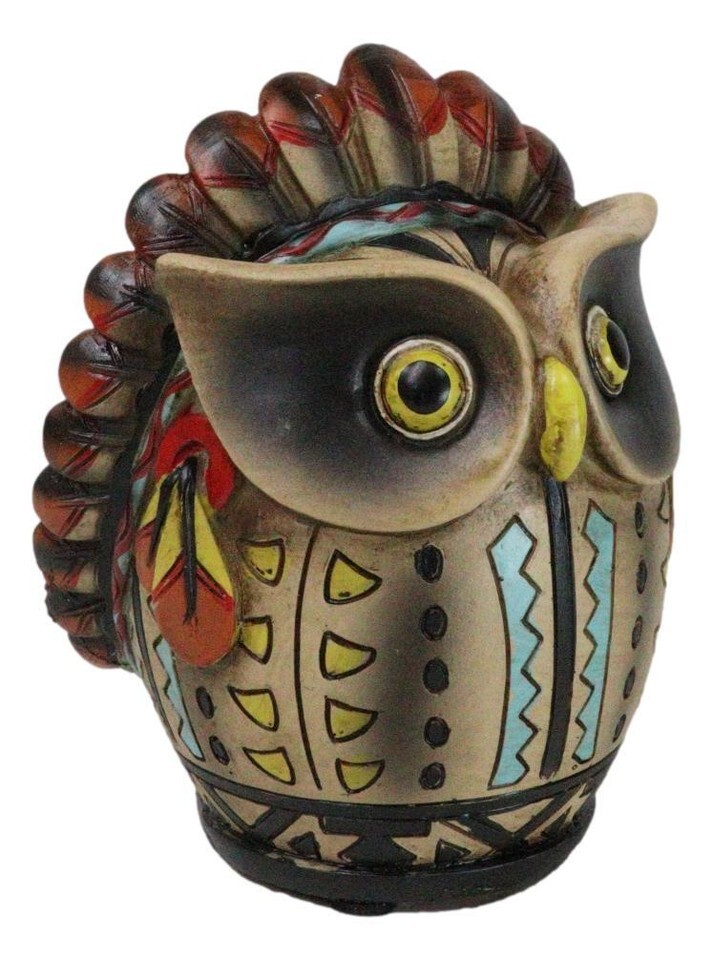 - Southwestern Colorful Tribal Native Indian Owl Chief With Headdress Money Bank