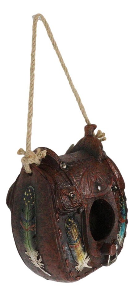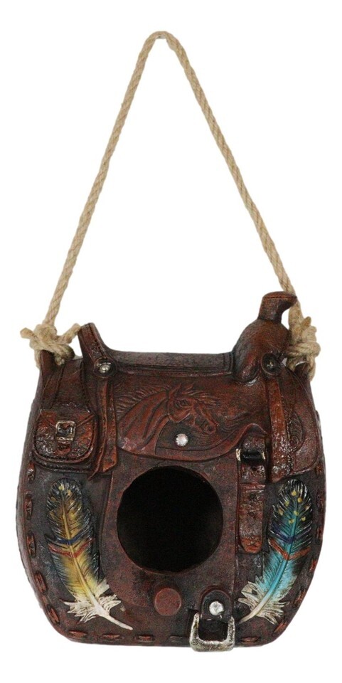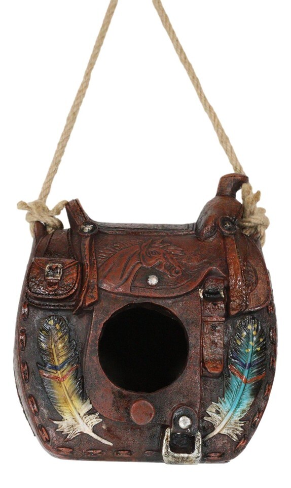 - Southwestern Indian Feathers Cowboy Horse Saddle Hanging Birdhouse Bird Feeder