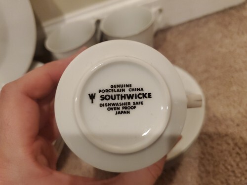 Bottom of all says "Genuine Porcelain China, Southwicke, Dishwasher Safe, Oven Proof, Japan"