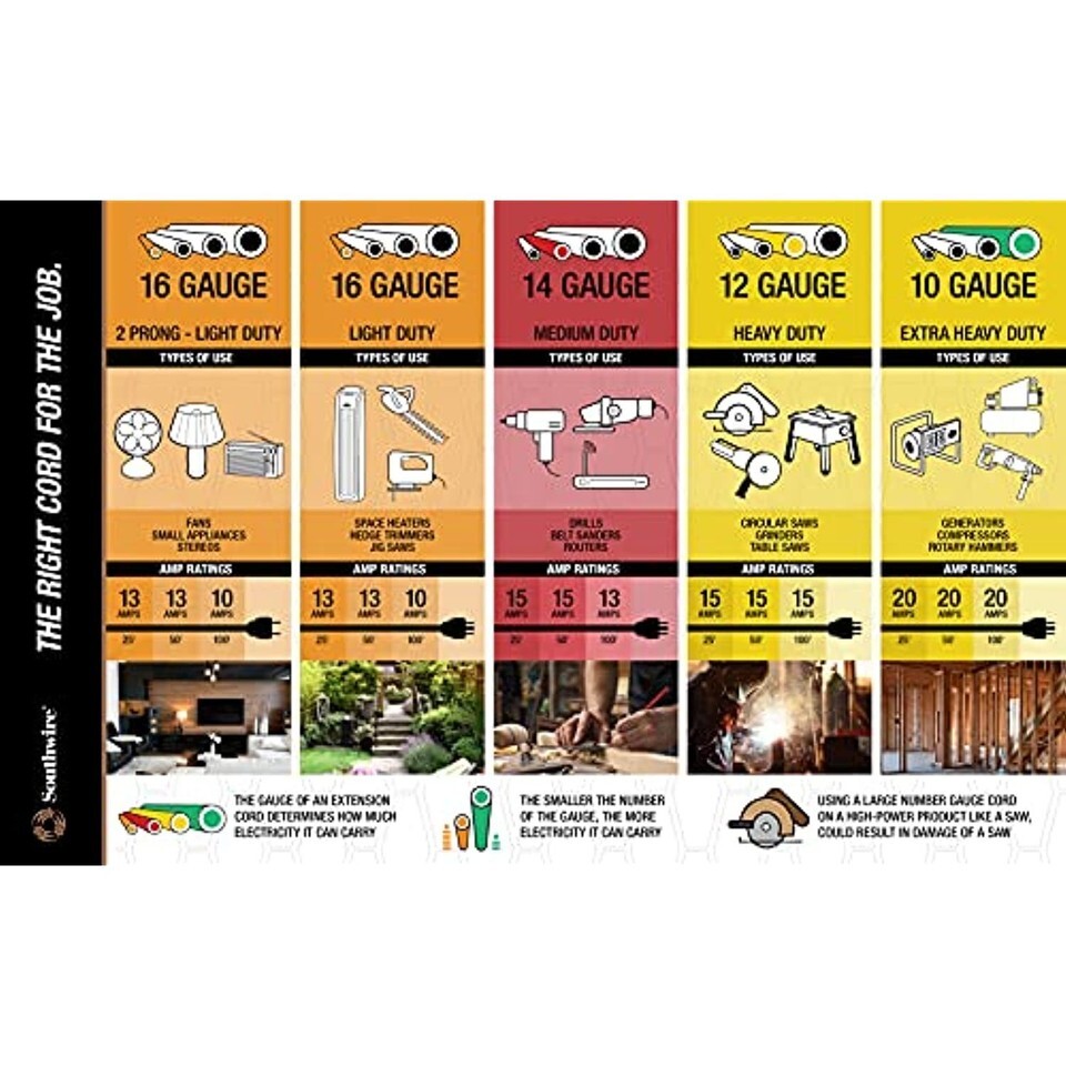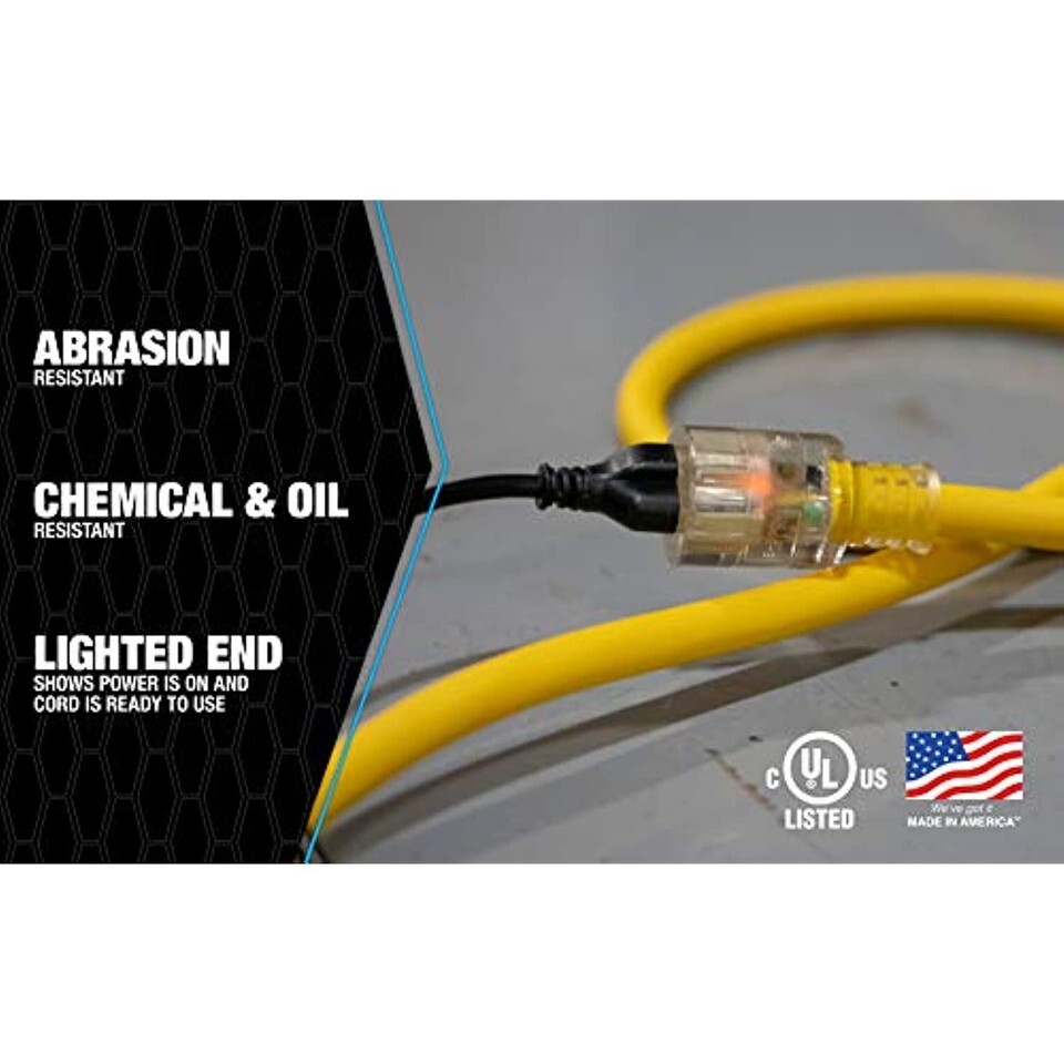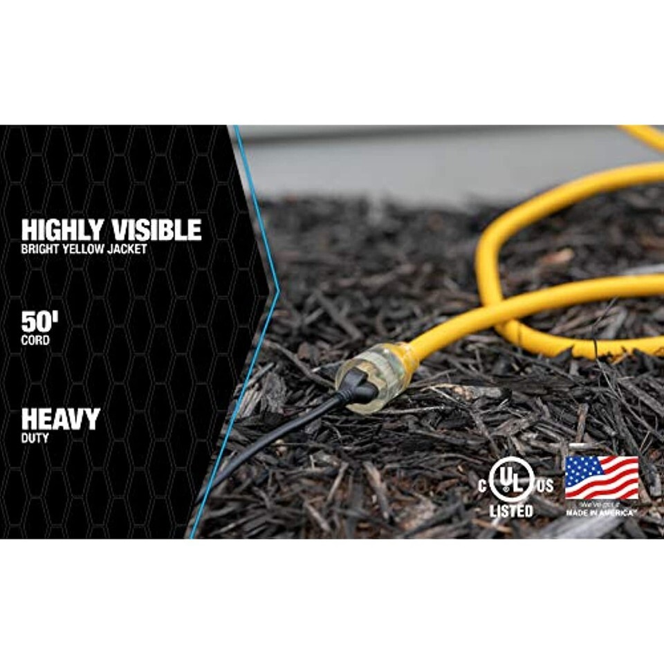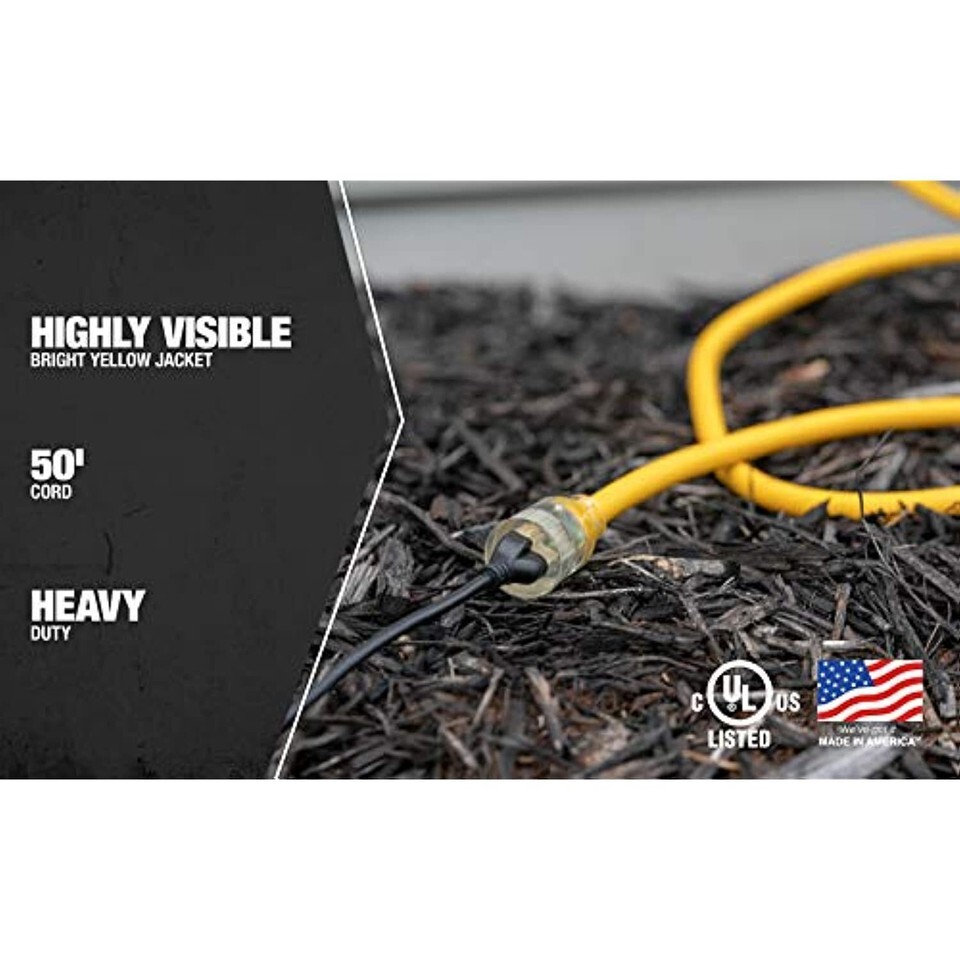 - Southwire 17880002 Extension Cord, 50-Feet, Yellow, Foot