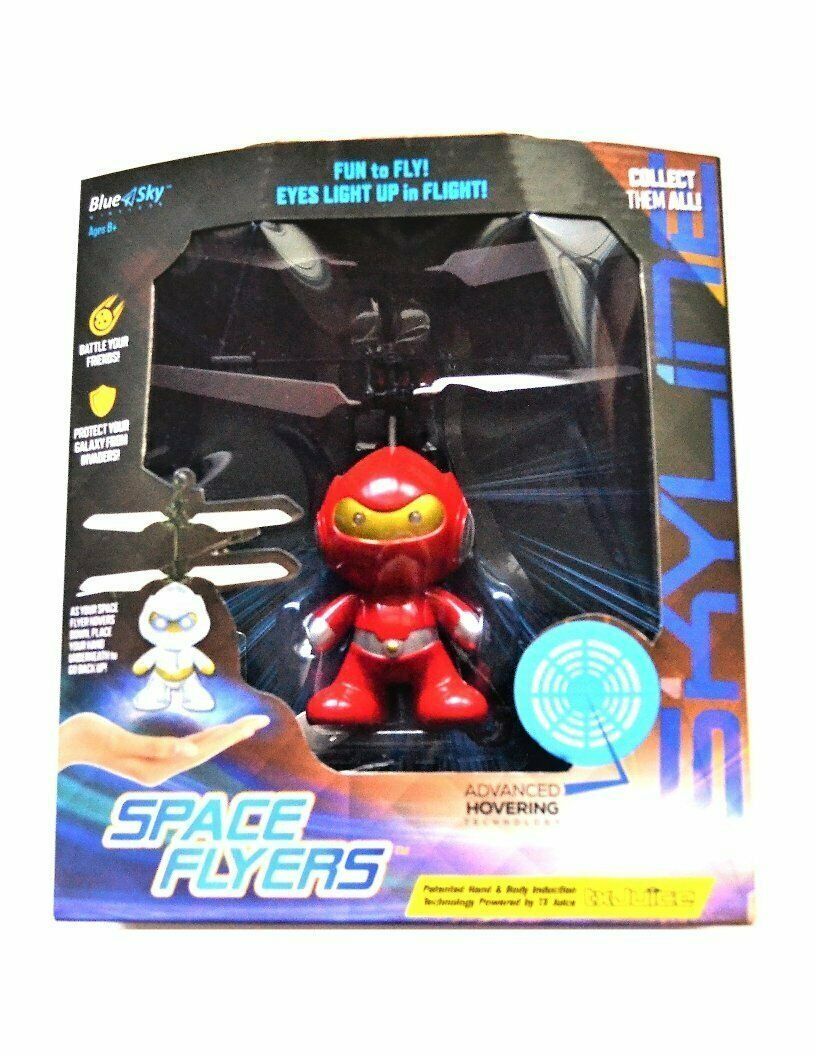 Space Flyers are fun to fly and battle with friends or work together to protect your galaxy from invaders! You can also collect "Captain Apollo"(White), "Captain Nebula" (Black) and "SGT. Super Nova" (Blue). About 5-10minutes charge time and 10 minutes of flying time. Watch as your Space Flyerhovers down, place your hand underneath for it to go back up.