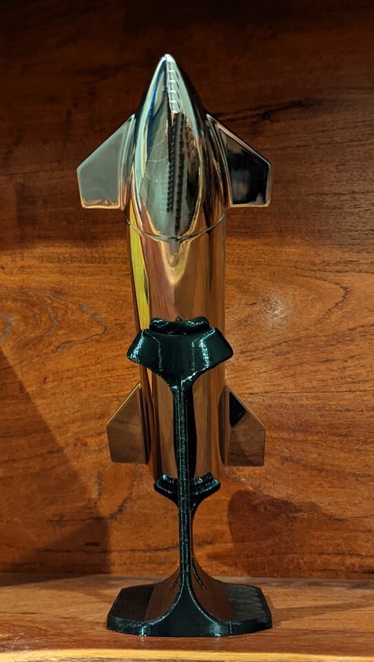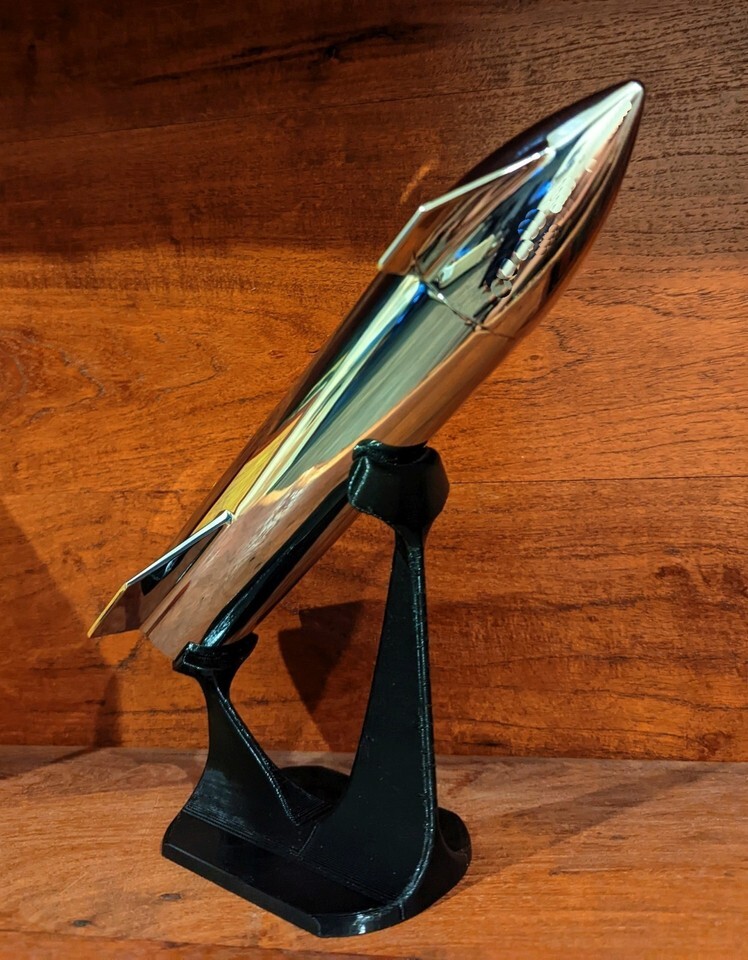 I will also include a free custom made display stand for your Starship. The stand is free so if you don't want it I can leave it out. The torch is designed to stand up on its own but you can also display it "in flight" on the stand. The stand is used and the finish isn't perfect, mainly on the back side of the tallest support, but it still shows great.