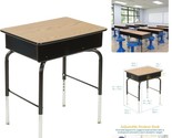 - Spacious Class Desk with Metal Storage Book Box - Adjustable Height, Oak Finish