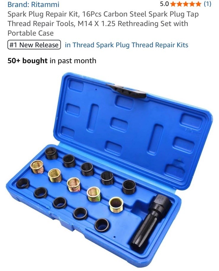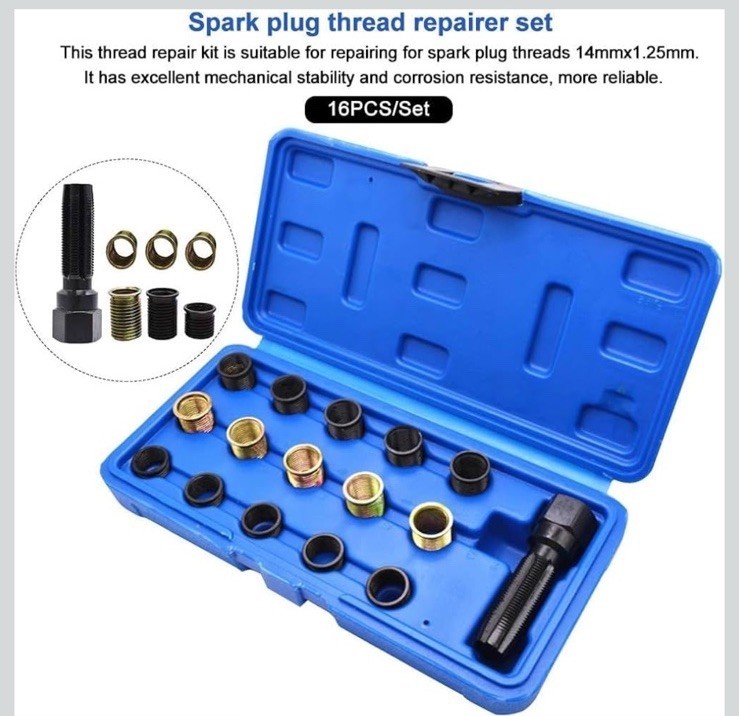 - Spark Plug Repair Kit, 16Pcs Carbon Steel Spark Plug Tap Thread Repair Tools, M1