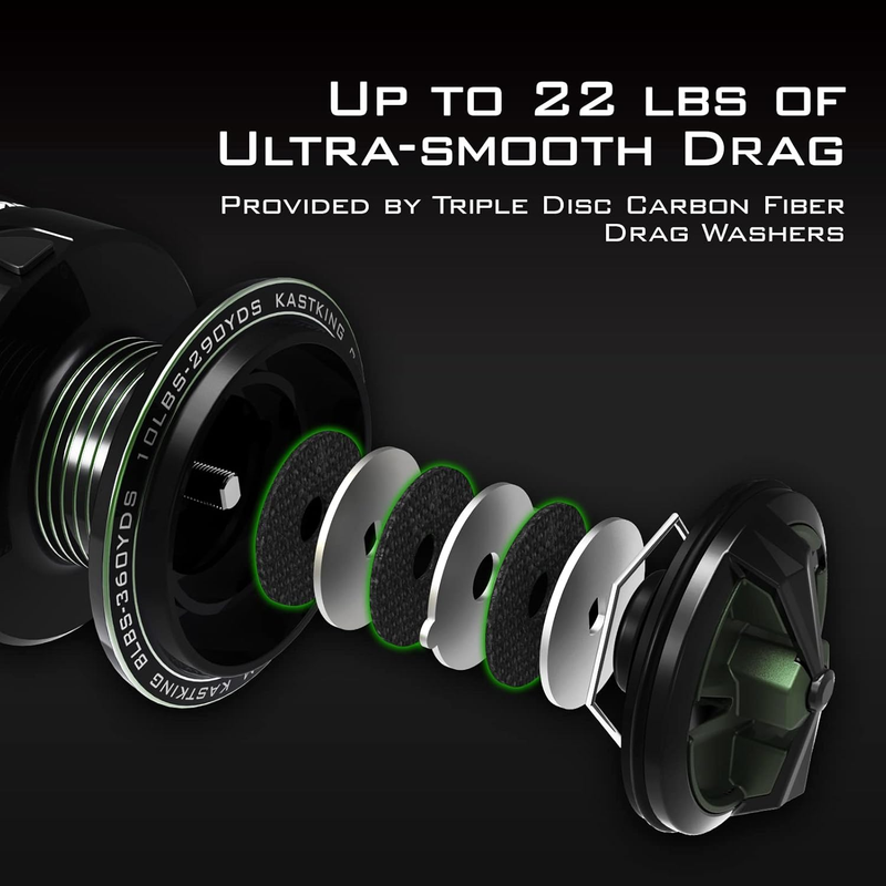 You?ll love the ultra-smooth feel of the 22 lbs triple-disc carbon fiber drag system, oversized stainless-steel main shaft, and strong metal gears. The Spartacus II delivers reliable stopping power for battling large fish with confidence.
