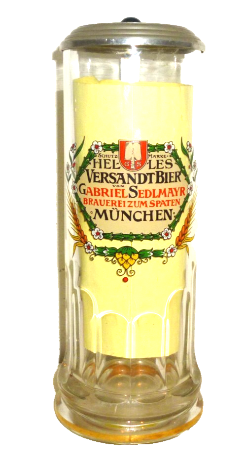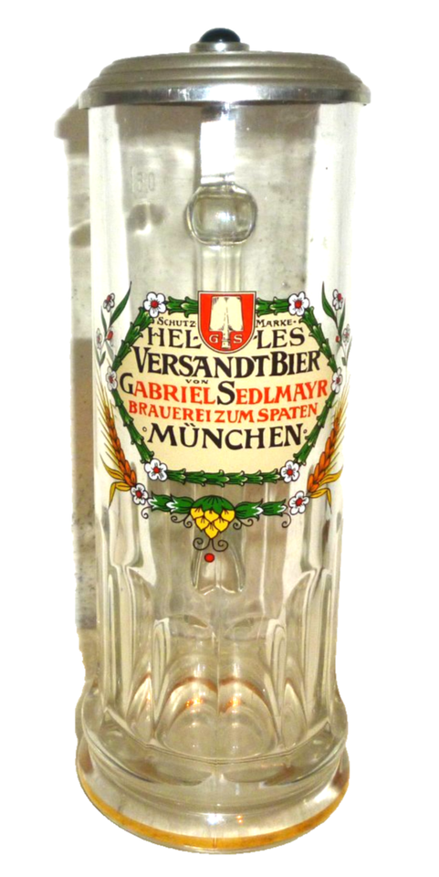 - Spaten Brau Munchen Sedlmayr Versandtbier lidded German Beer Glass Seidel