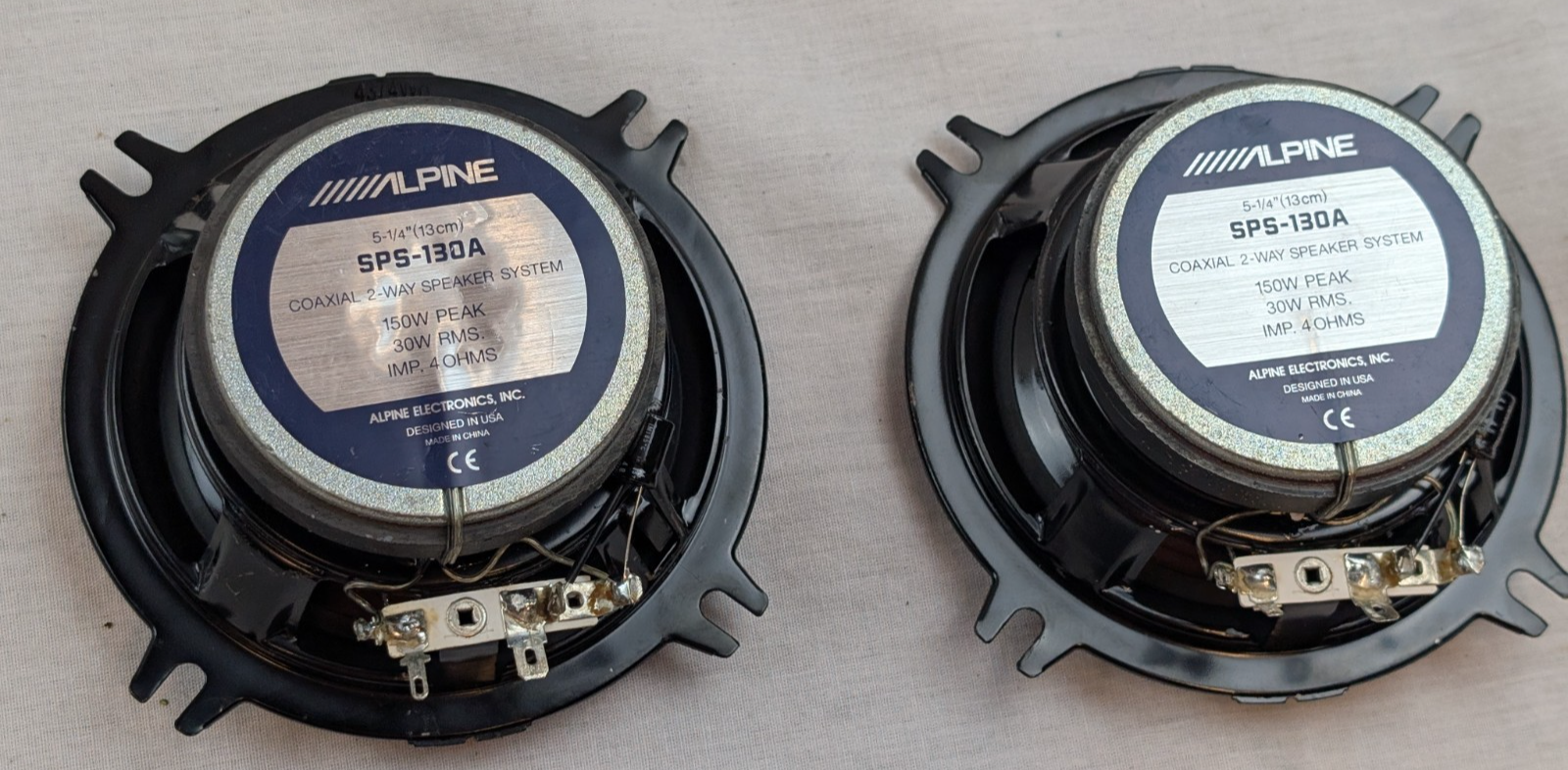 - Speaker set of 2 ALPINE SPS-130A 5.25” 5 1/4” WORKING 150W Peak 30W RMS