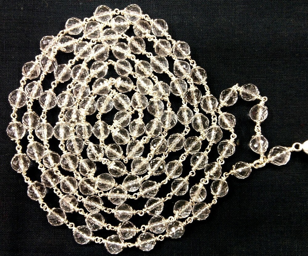 - Sphatik Diamond Cutting Mala In Pure Silver - 7 mm - 108+1 beads - Lab Certified