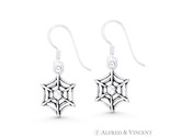 Spider Web Goth Arachnid Charm Solid 925 Sterling Silver Dangling Hook Earrings
