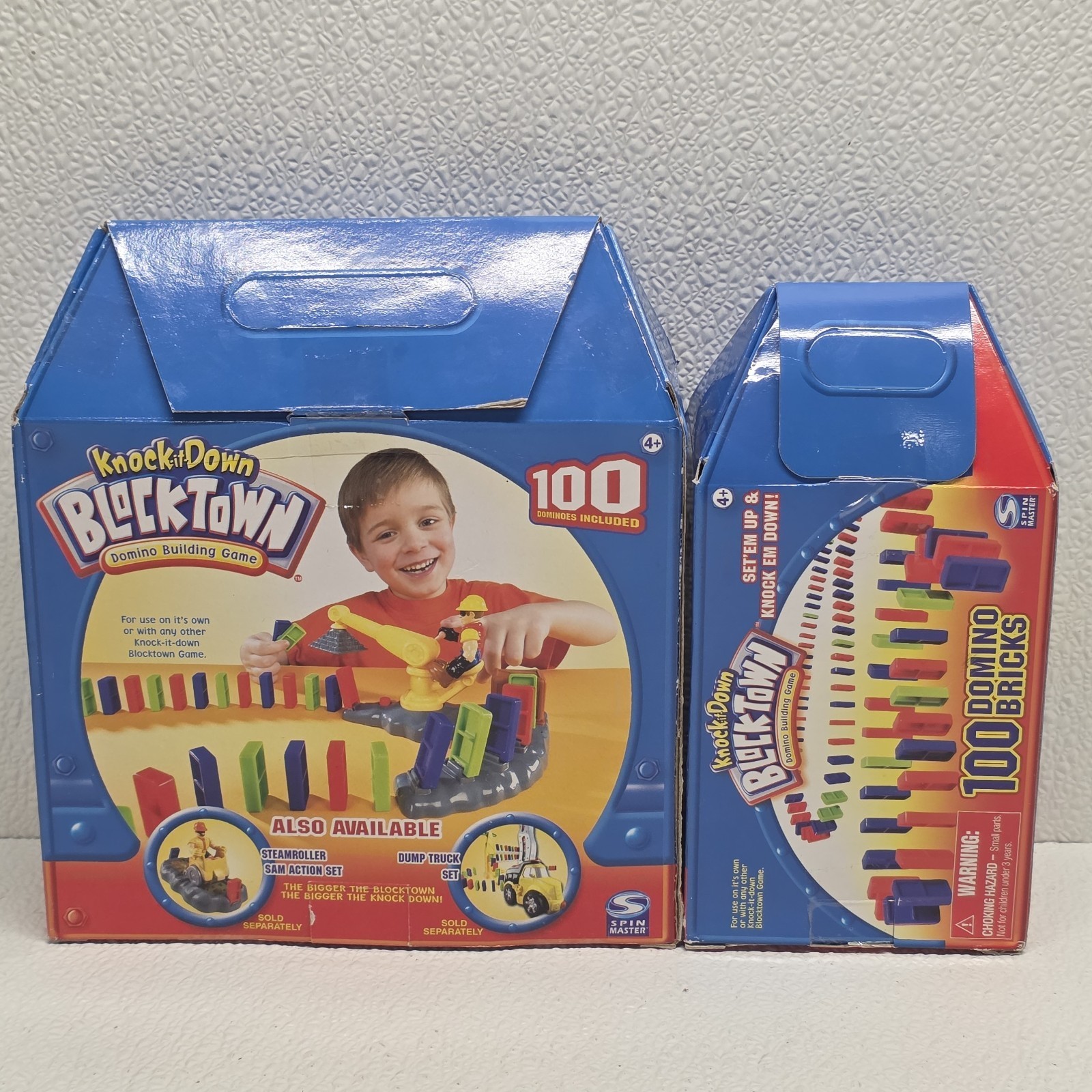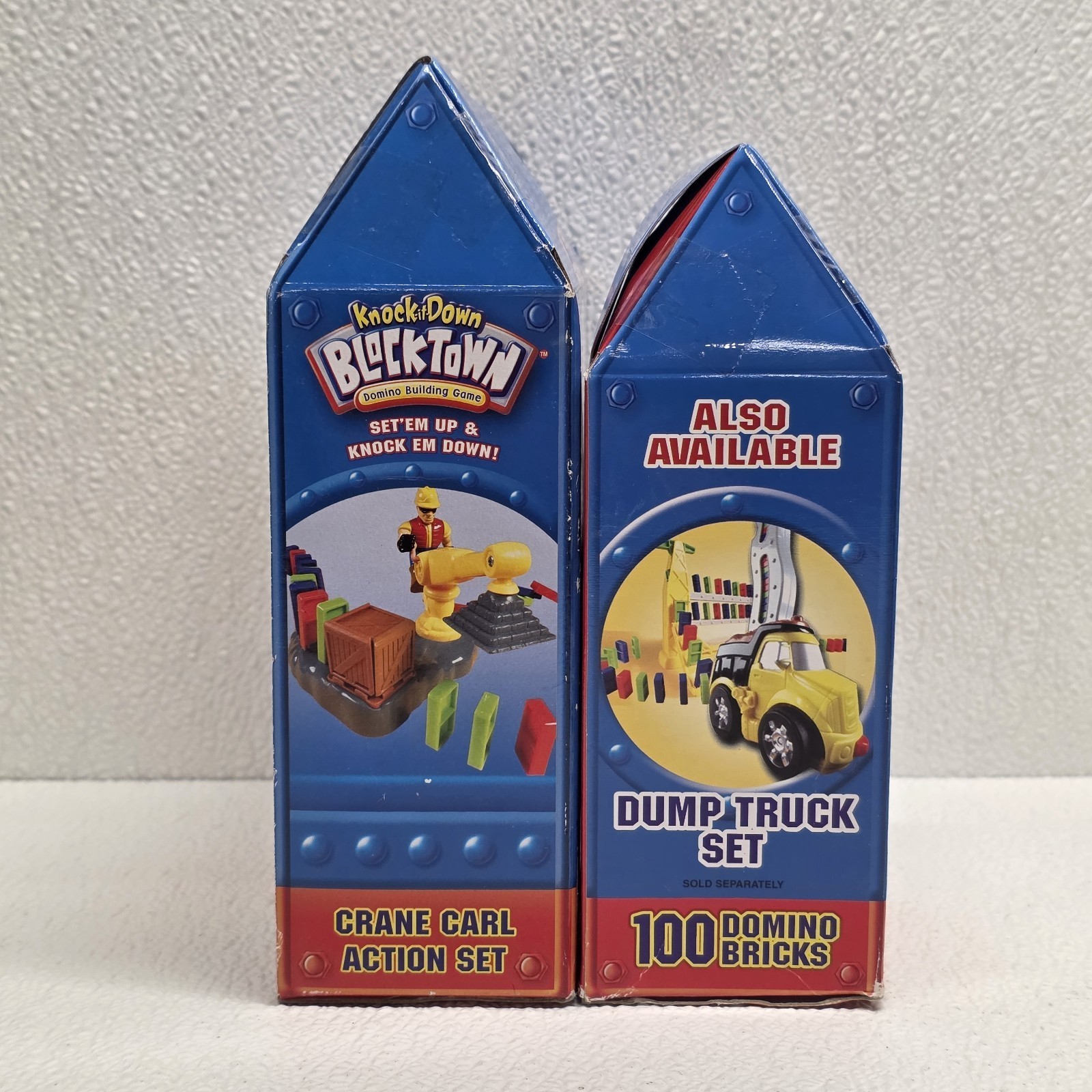 Spinmaster 2005 Knock-it-Down Block Town Domino Building Game Crane Carl Action Set 100 Extra Dominoes. Boxes are still new sealed. Images show actual set that will ship.