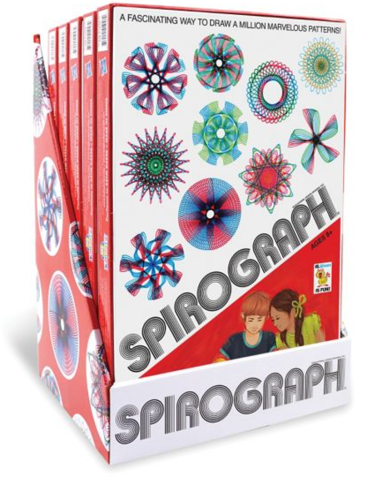 This commemorative edition Spirograph Retro Deluxe Set is a reproduction of the original, just like you remember. This deluxe set features throwback packaging retro graphics. with all the iconic wheels and rings of the original, the precision engineered Spirograph set gears work with the three design pens included, as well as with most standard pens, markers and pencils.