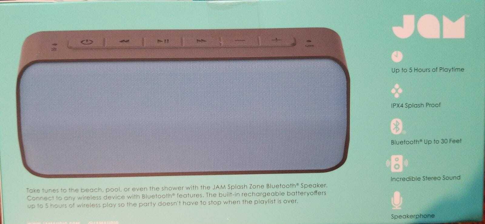 Take tunes to the beach, pool, or even the shower with the JAM Splash Zone Bluetooth Speaker. Connect to any wireless device with Bluetooth features. The built-in rechargeable battery offers up to 5 hours of wireless play so the party doesn't have to stop when the playlist is over.