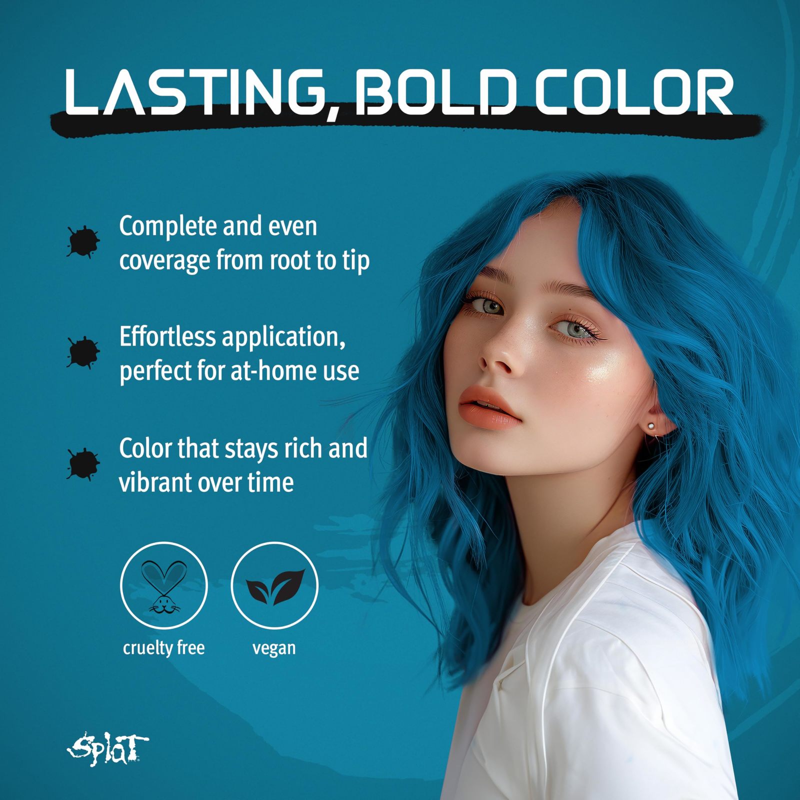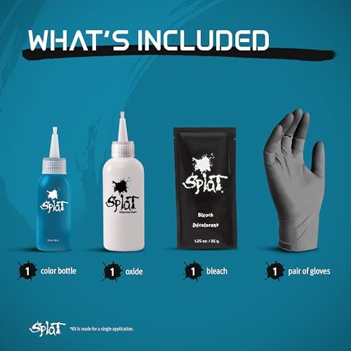- Splat Pure Sapphire Semi Permanent Hair Dye Kit with Bleach, 1 Application, Incl