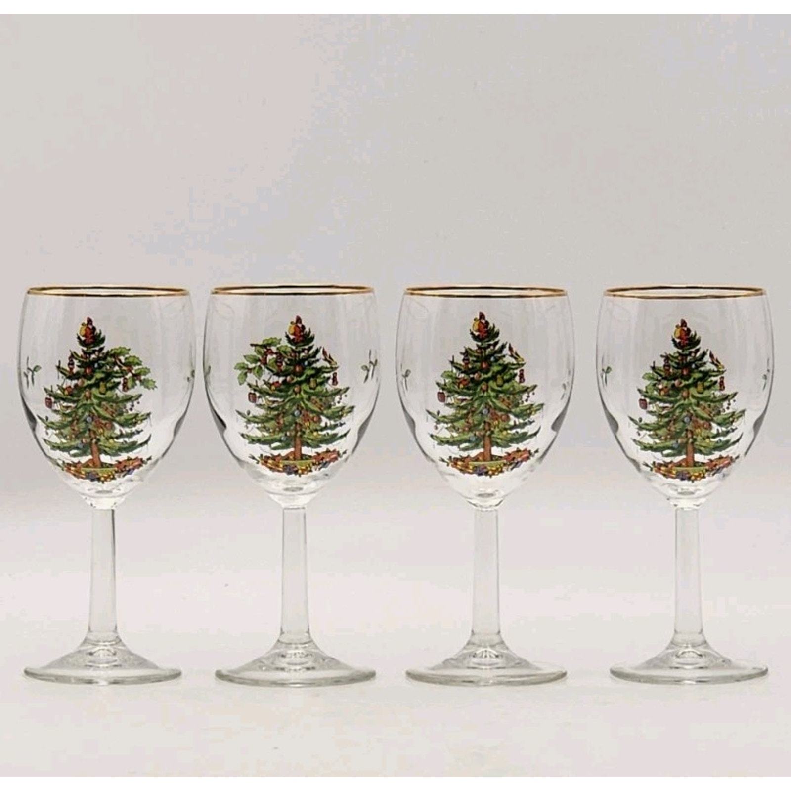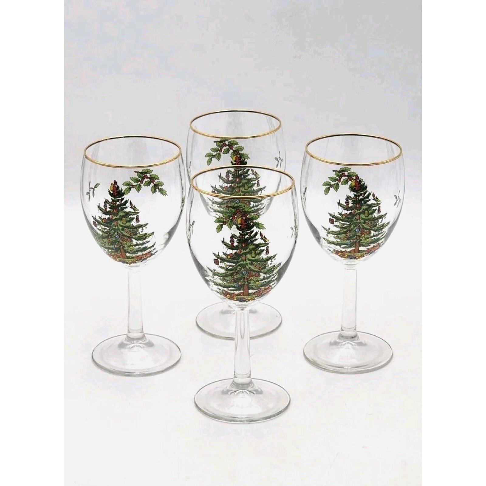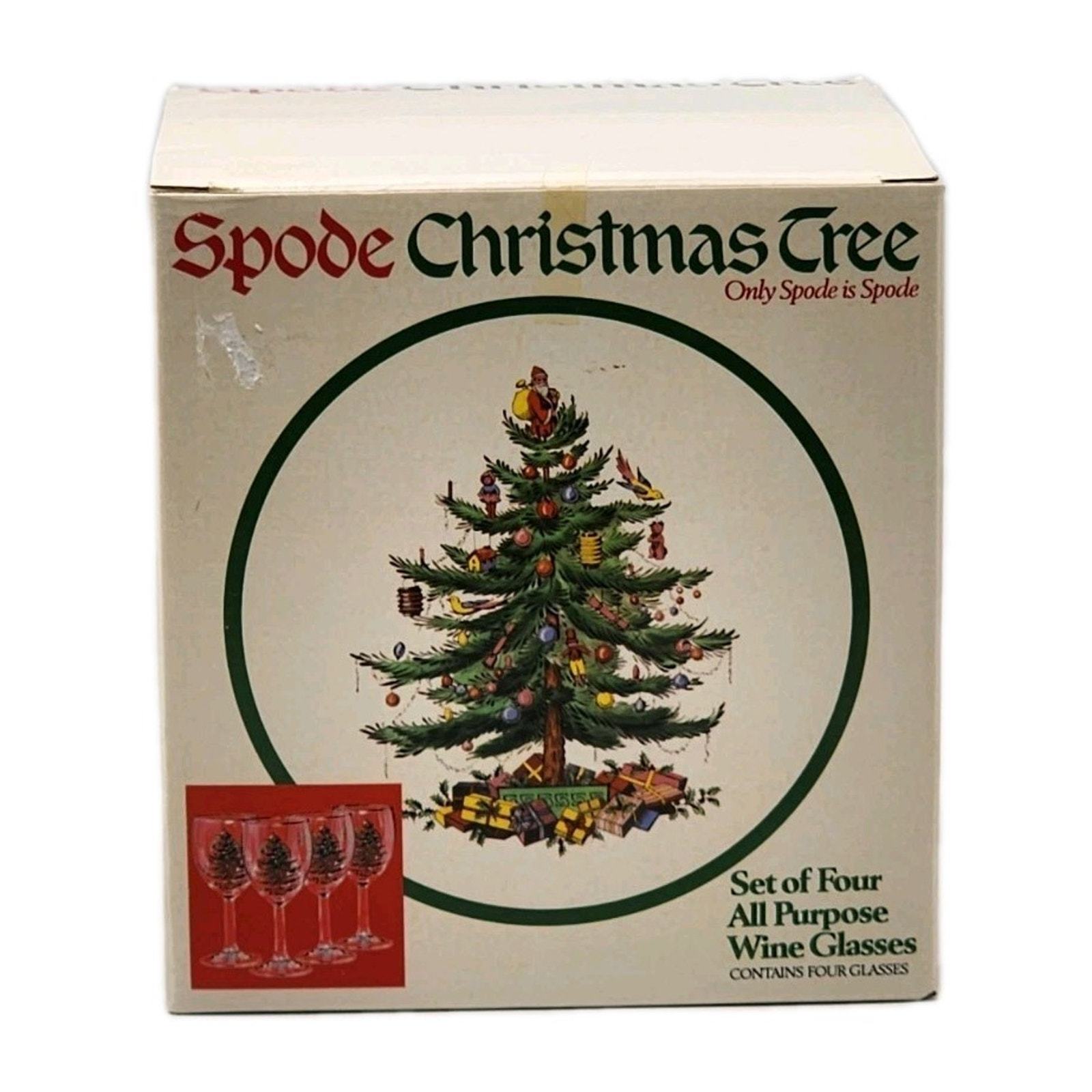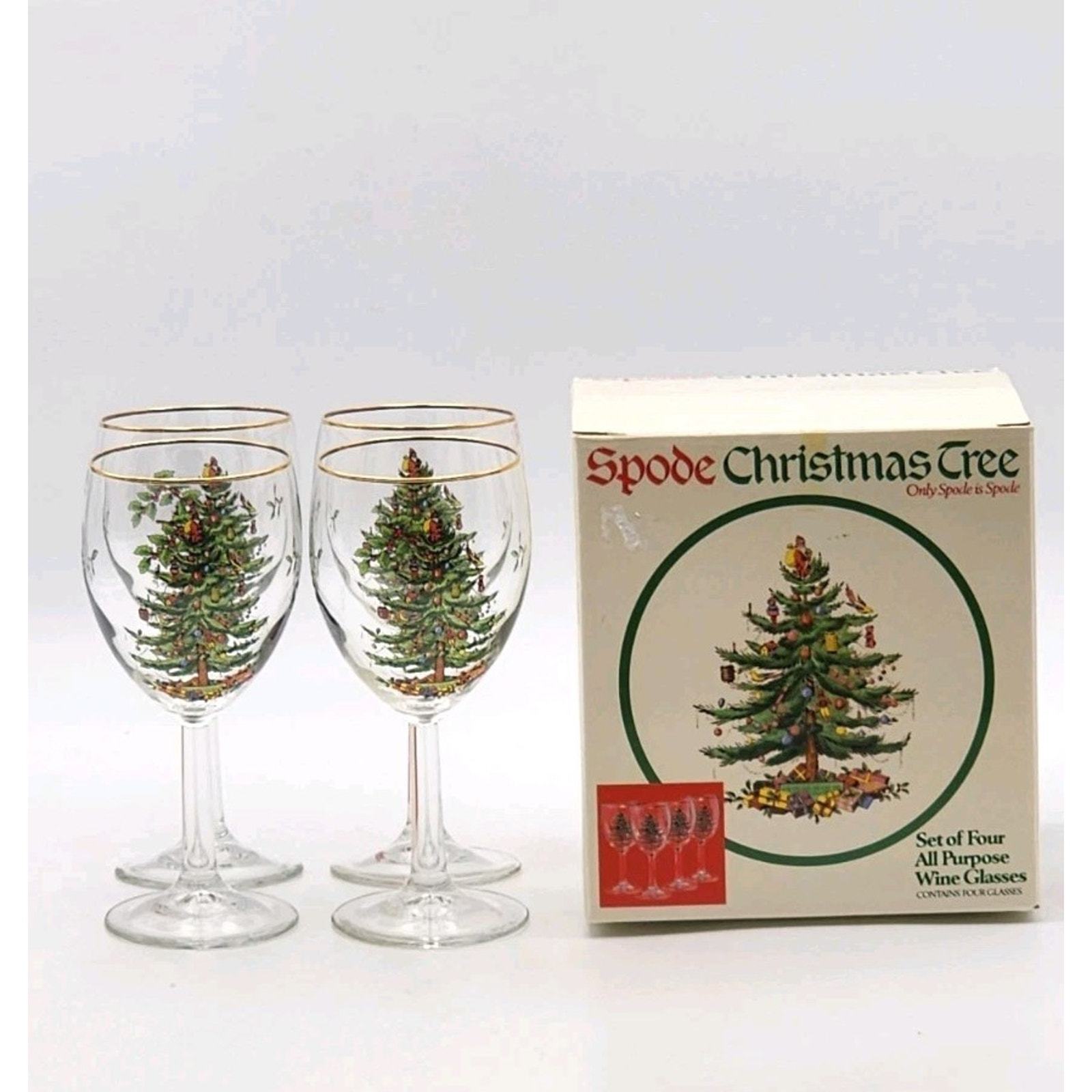 - Spode Christmas Tree Wine Glasses Set Of 4 All Purpose Stemware In Original Box