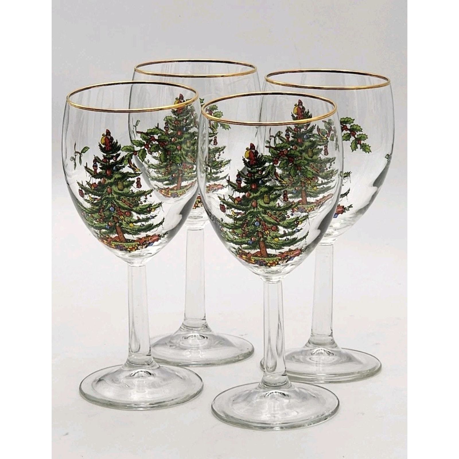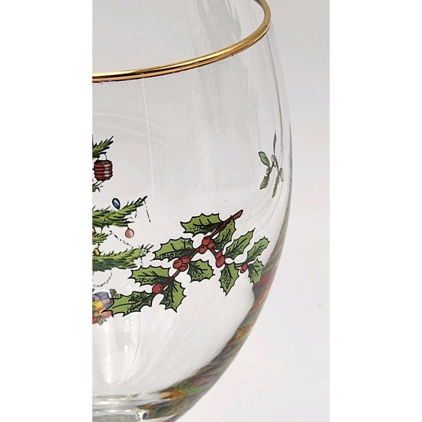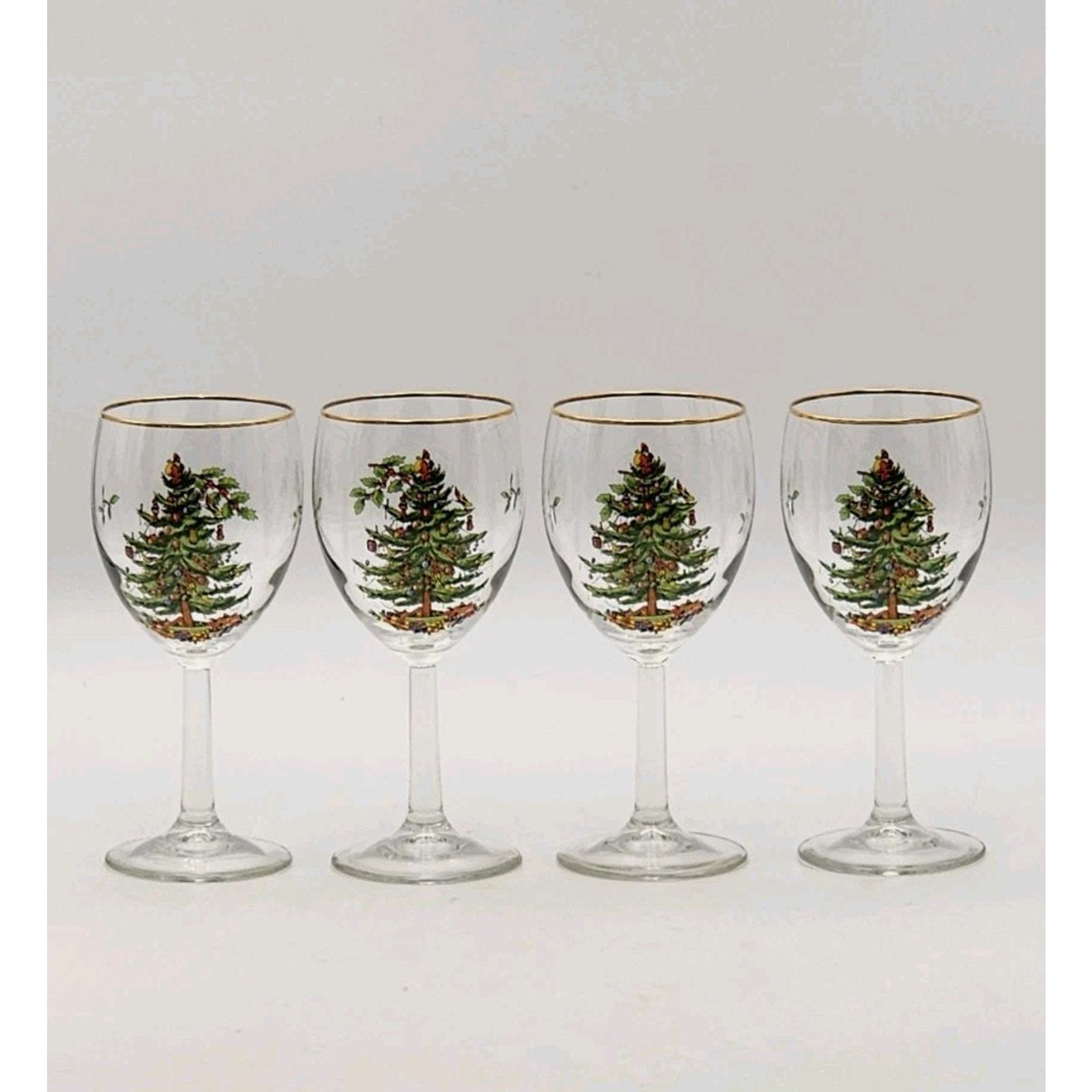 - Spode Christmas Tree Wine Glasses Set Of 4 All Purpose Stemware In Original Box