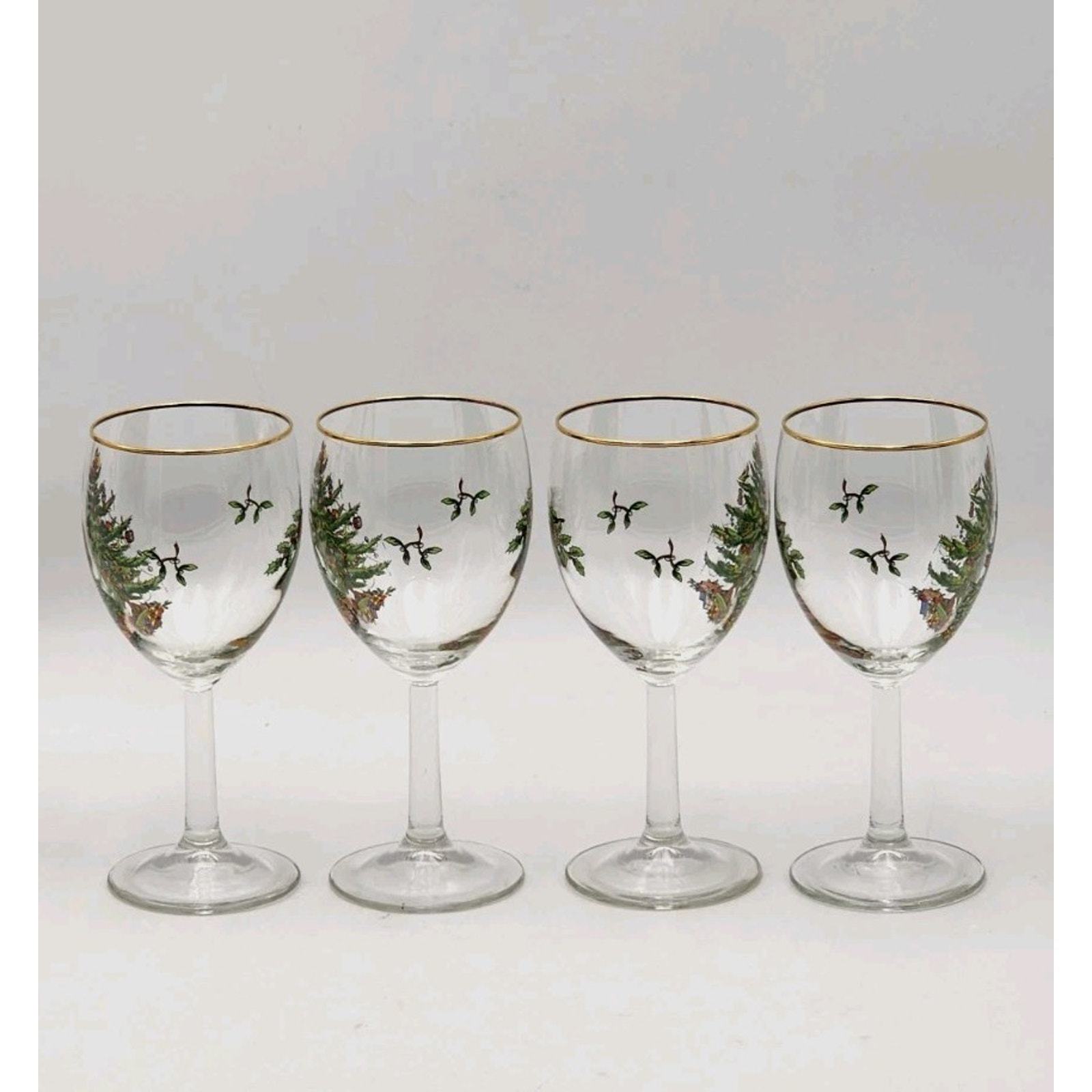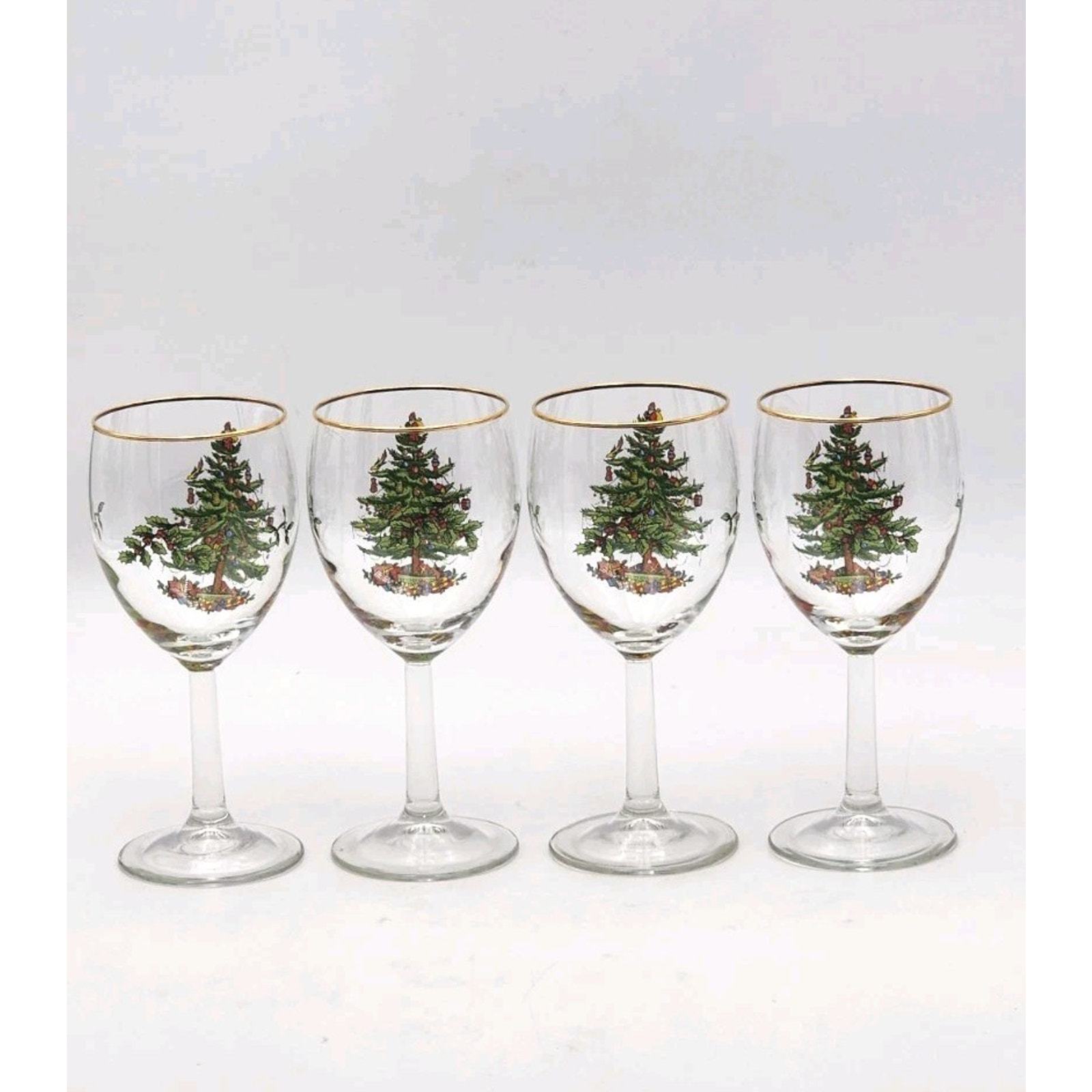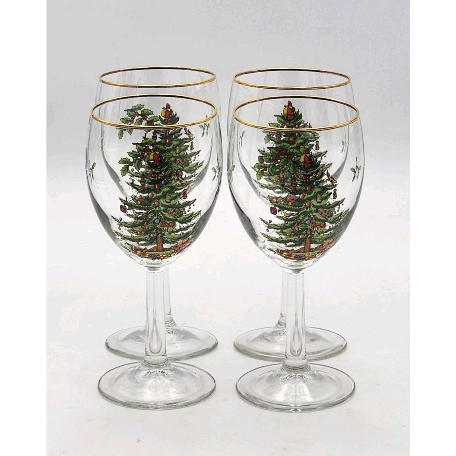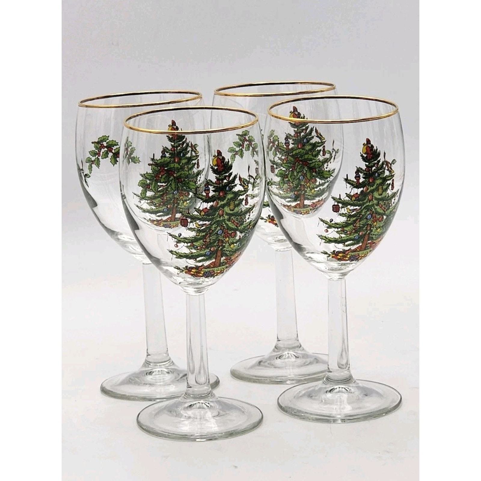 - Spode Christmas Tree Wine Glasses Set Of 4 All Purpose Stemware In Original Box