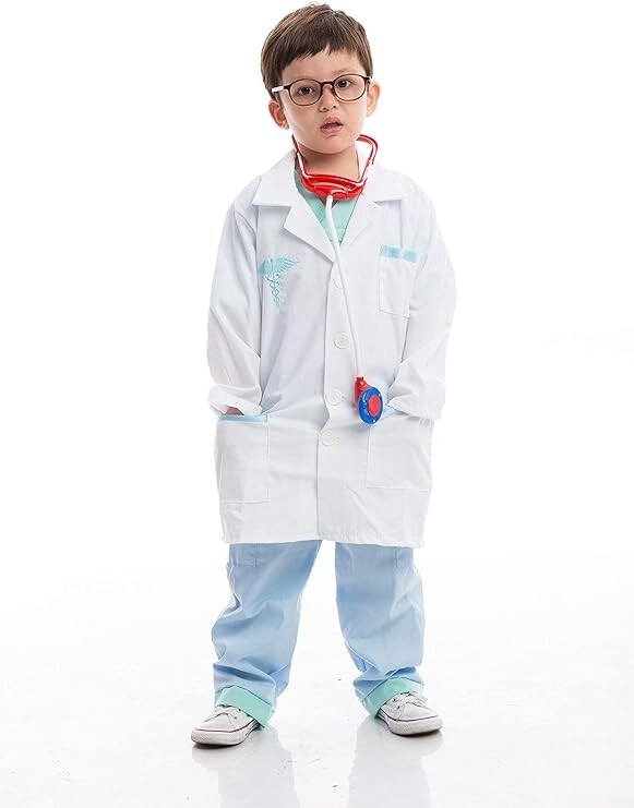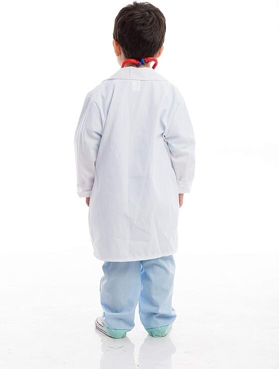 Unisex Kids Child Medical White Dr. Lab Coat Costume, includes Doctor Coat w/ Spacious One Chest Pocket, Two Lower Pockets and Real Buttons and One Stethoscope Toy