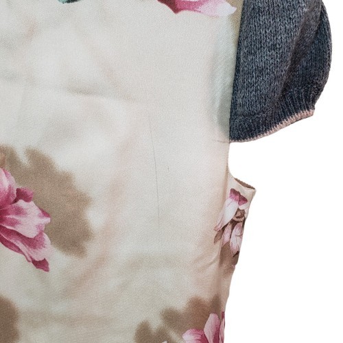 - Sportmax Defile Floral Silk Dress With Wool Knit Cap Sleeves US Size 2