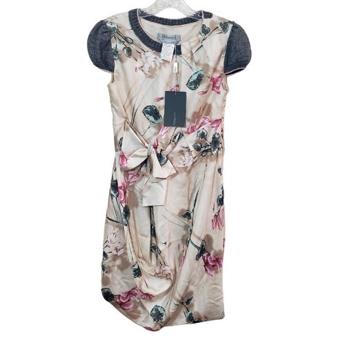 Sportmax Defile Floral Silk Dress With Wool Knit Cap Sleeves US Size 2