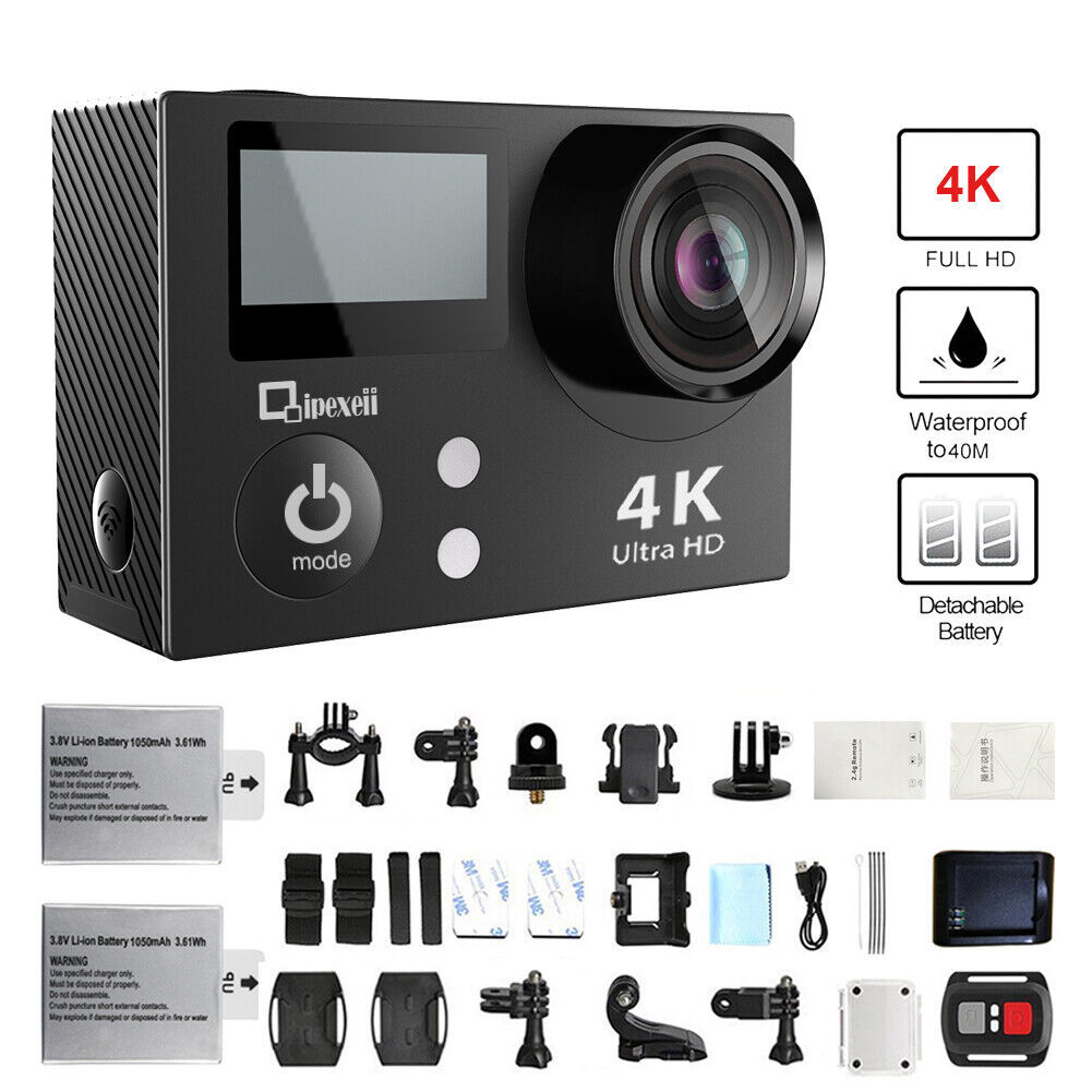 You are Buying a Brand New And Factory Sealed 4K Wifi Sports Action Camera With Double Screen Sensor 100 Ft Waterproof 170 Wide Angle In Black