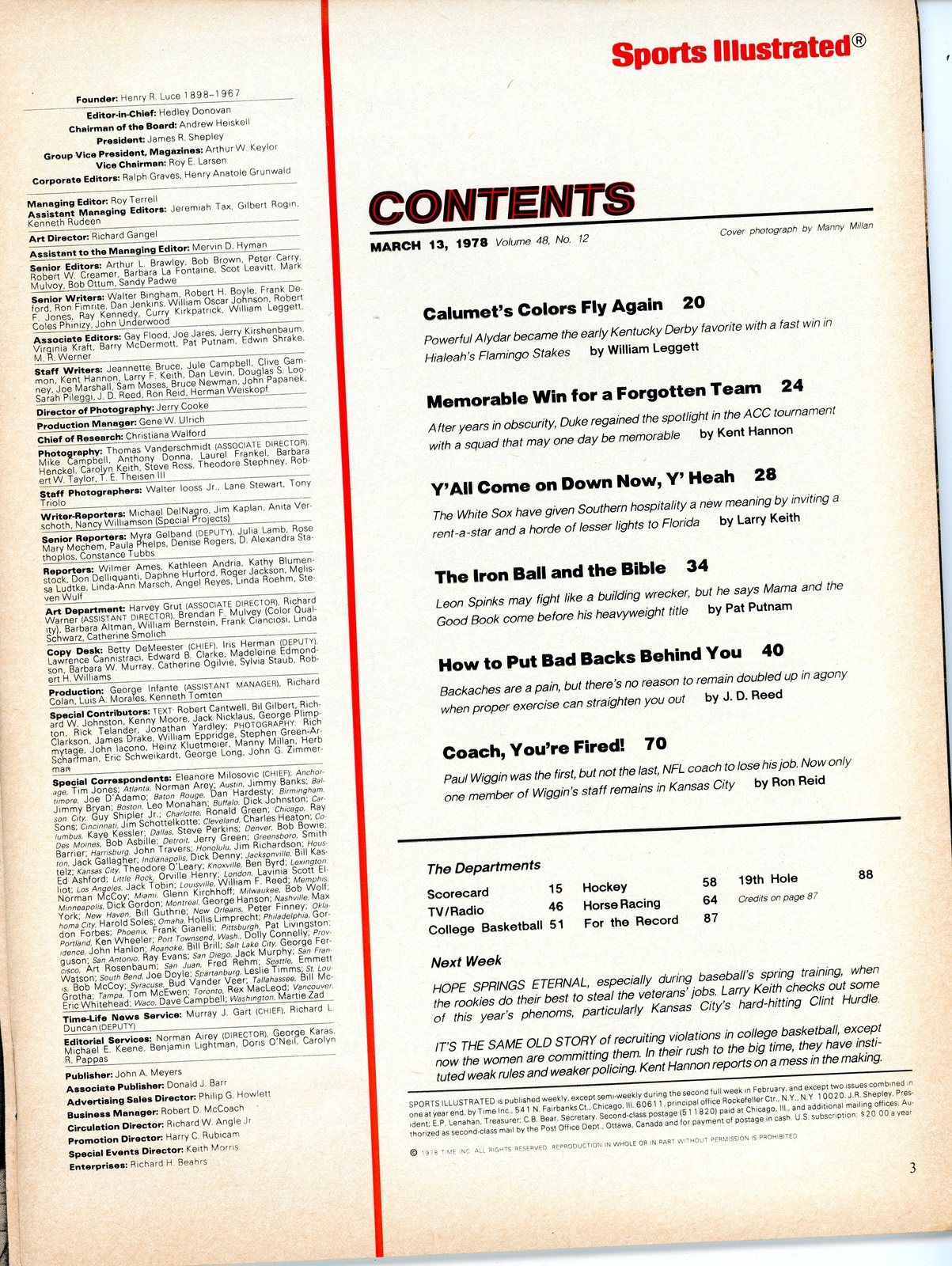 - Sports Illustrated 1978 Duke NCAA ACC Champs Alydar Leon Spinks Paul Wiggin