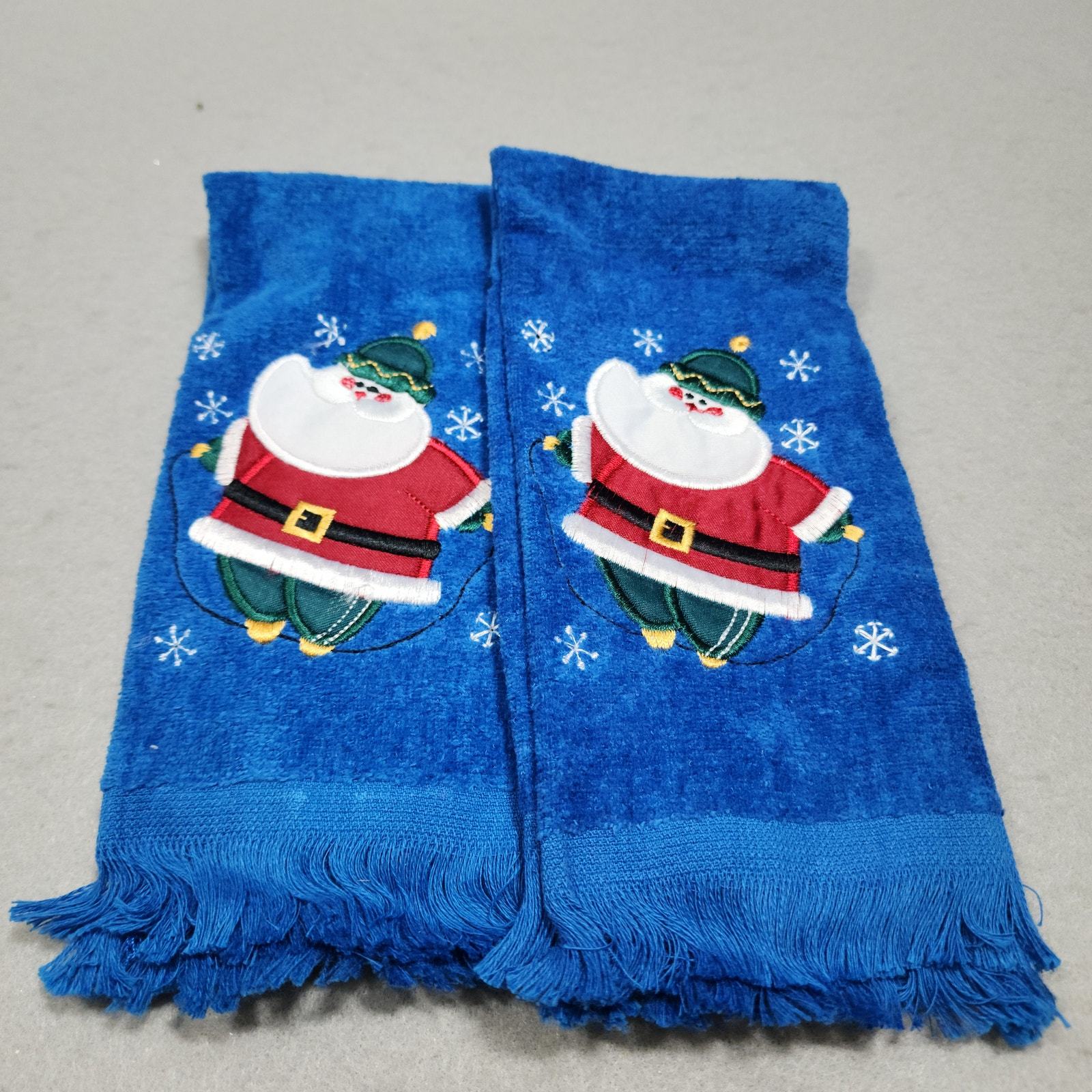 - Sports Santa Claus Skating & Jump Roping Christmas Themed Kitchen Tea Towels 4pc