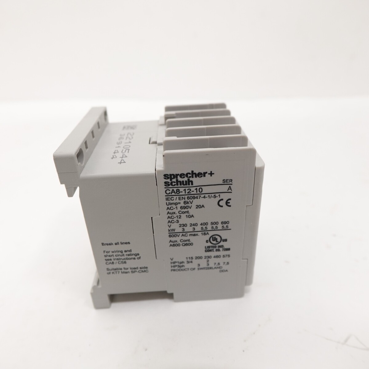 - Sprecher + Schuh CAB-12-10 Contactor 20A 600V IEC AC-12 Series A – New (No Box)