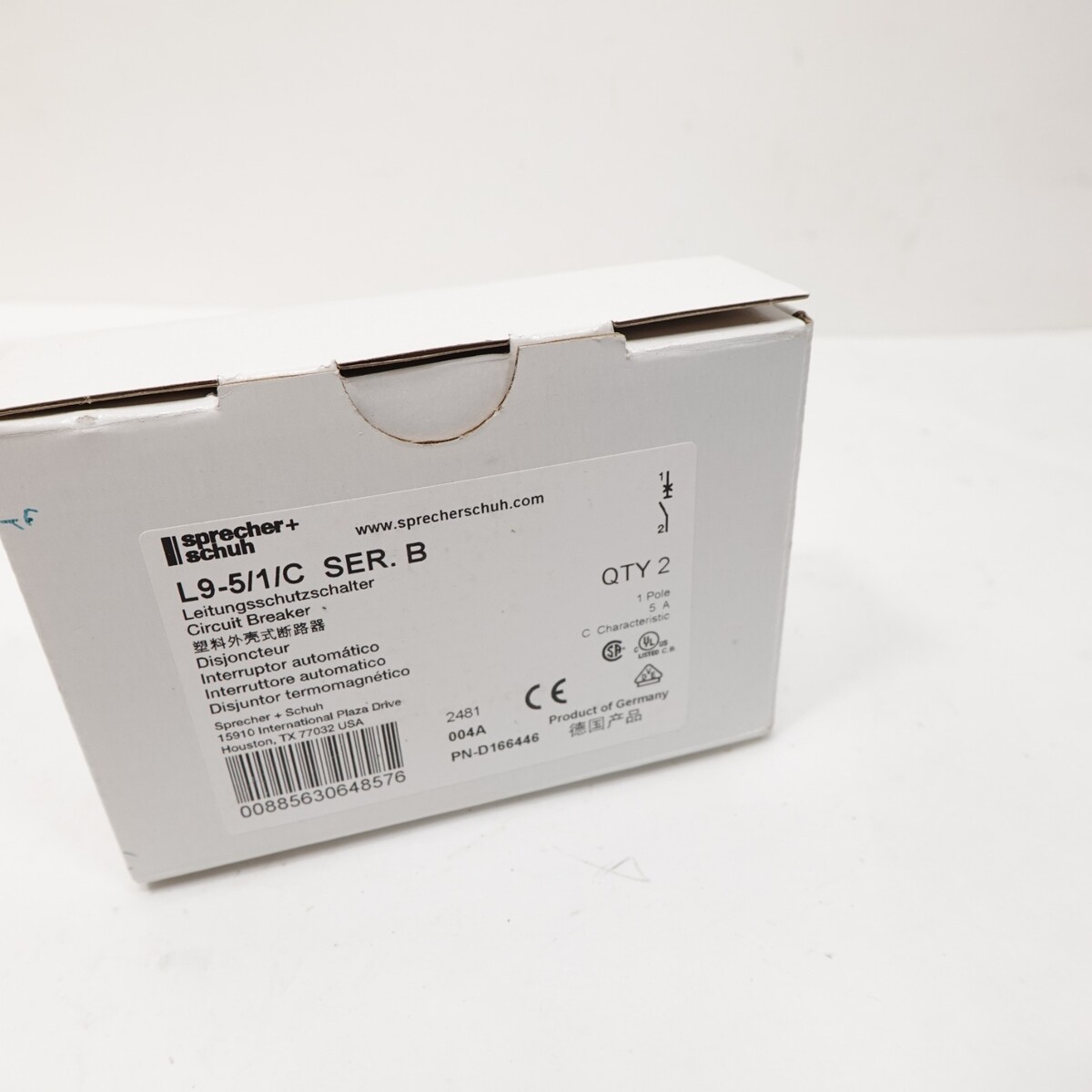 - Sprecher + Schuh L9-5/1/C SER. B Circuit Breaker 1-Pole 5A C Curve (Lot of 2)
