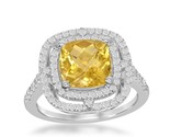Sterling Silver Square Citrine with Double White Topaz Border 2.64cttw Ring
