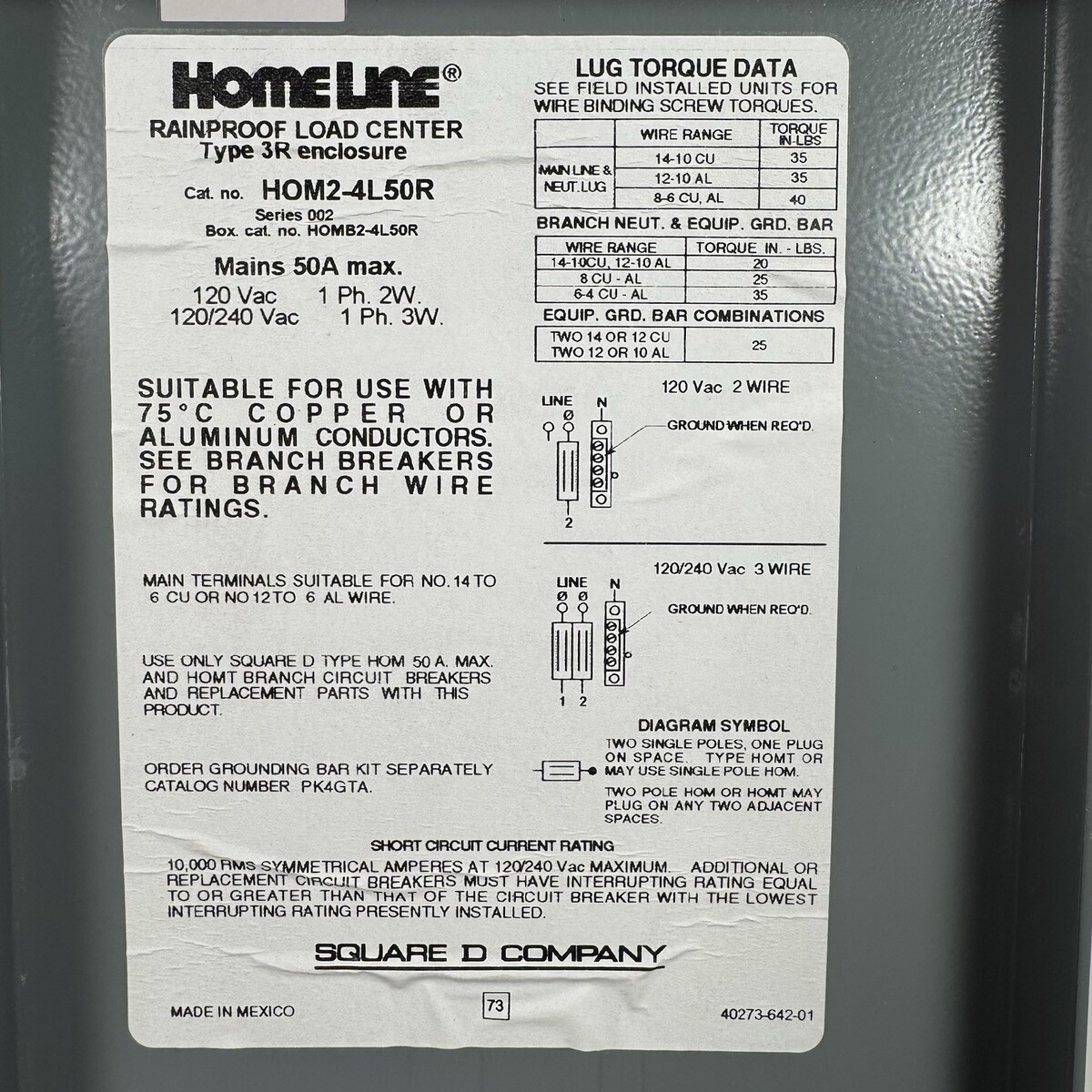 - Square D Homeline HOM2-4L50R 50A 2-Space Spa Panel Load Center