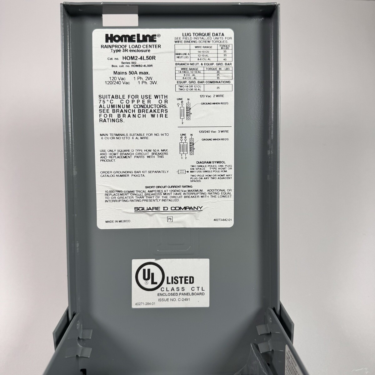 Square D Homeline HOM2-4L50R 50A 2-Space Spa Panel Load Center
