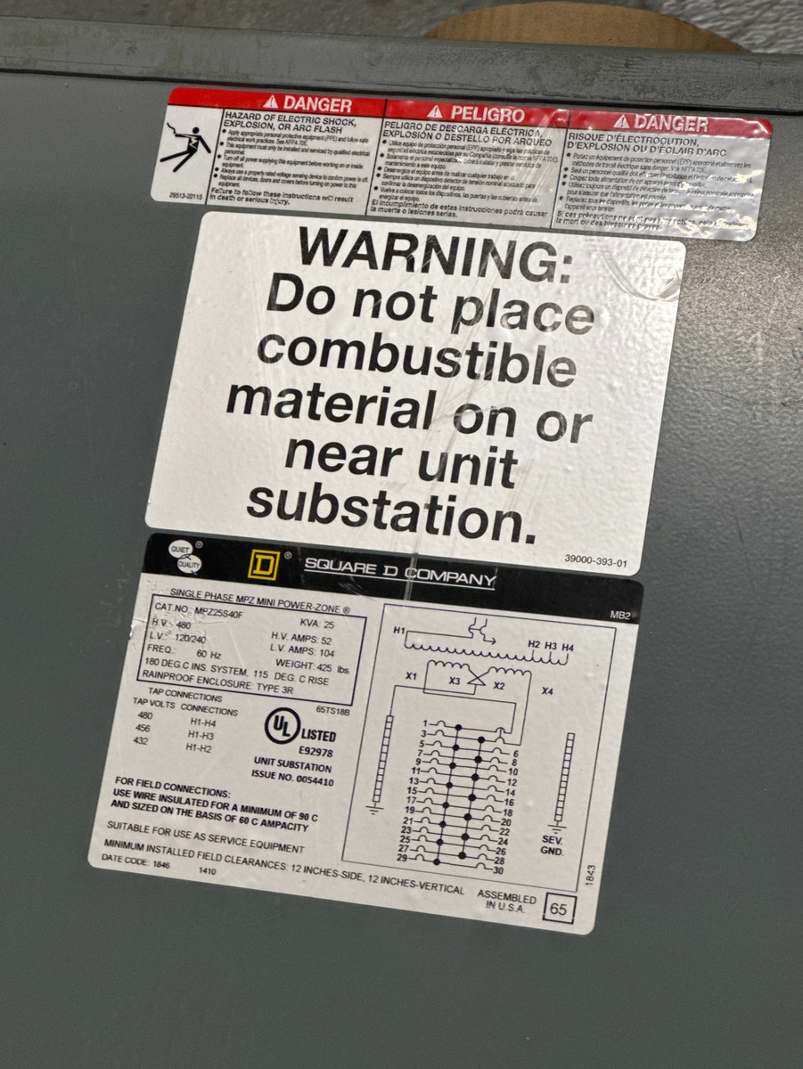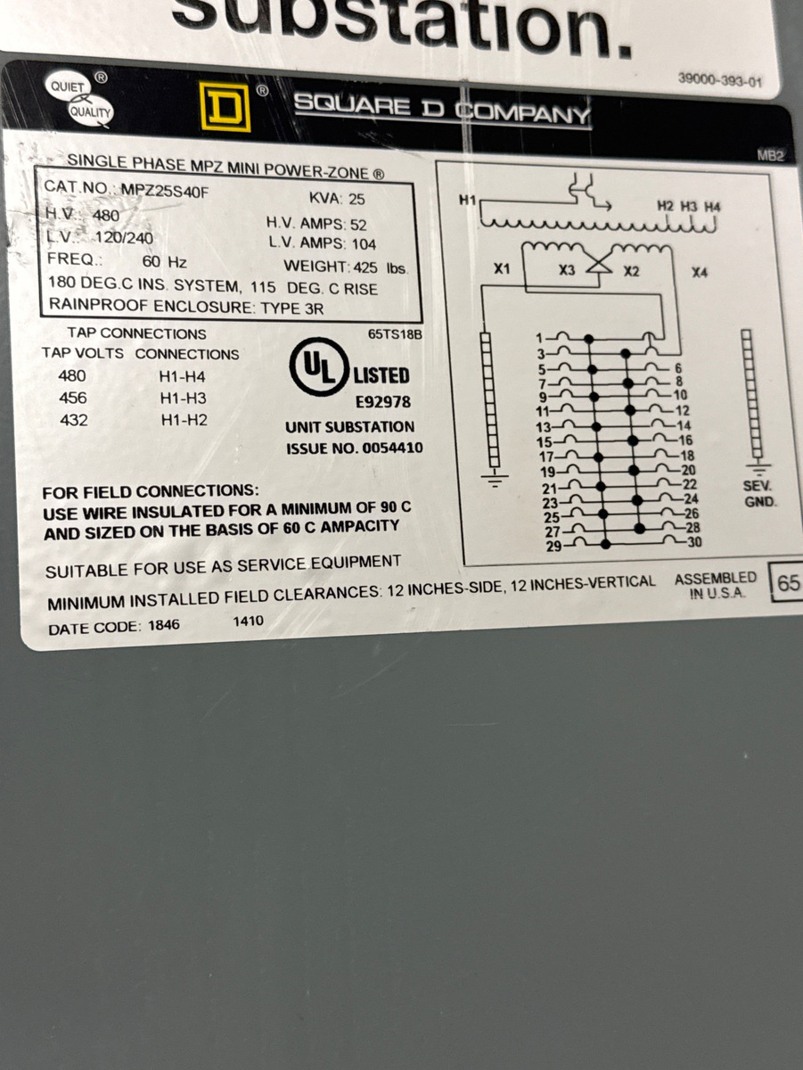 - Square D MPZ25S40F Single-Phase Mini Power-Zone, 25kVA