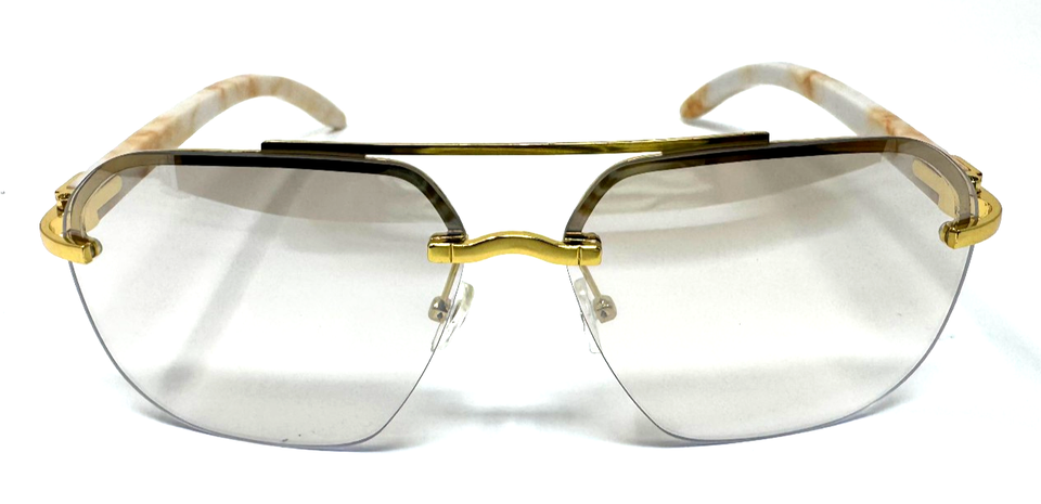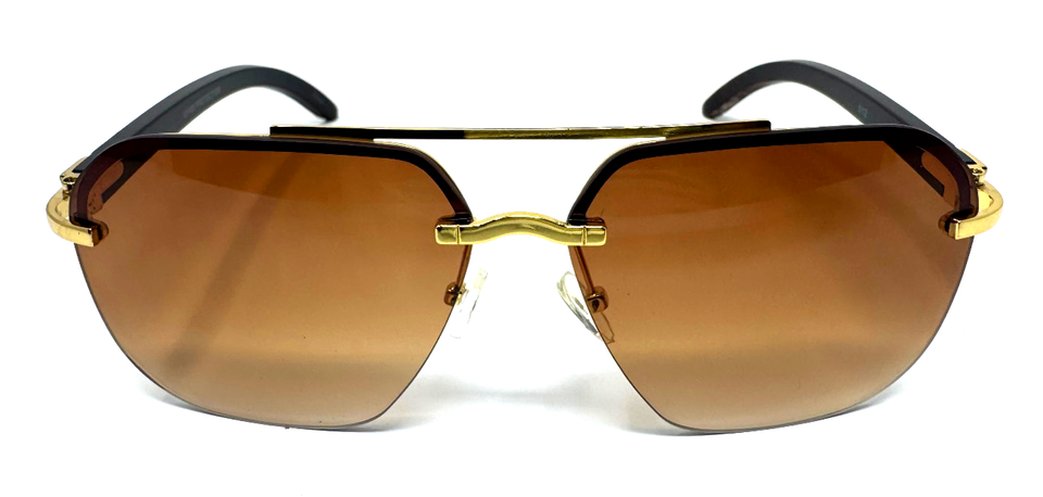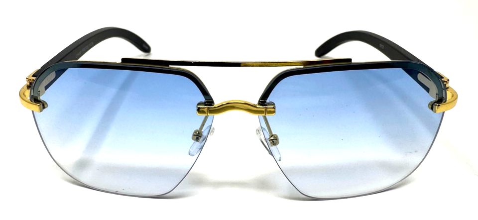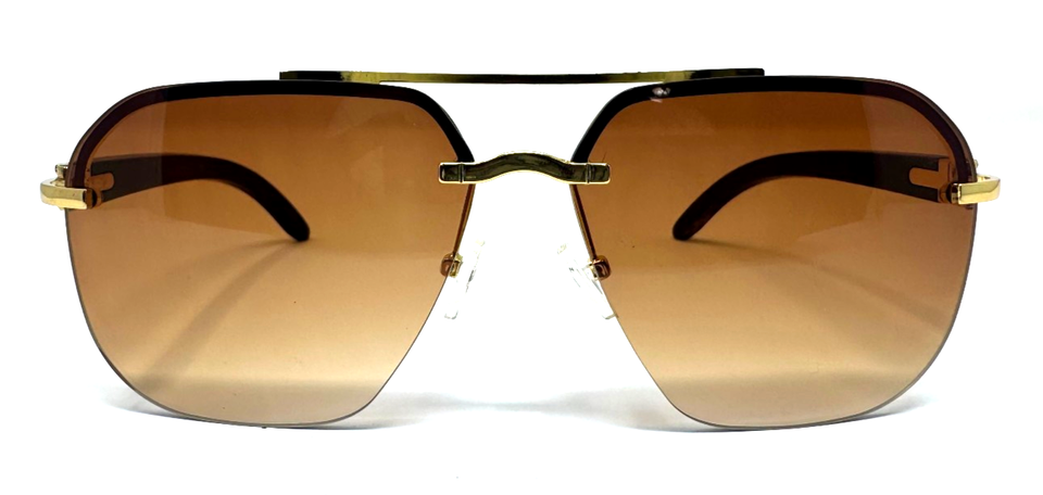 - SQUARE SEMI RIMLESS AVIATOR SUNGLASSES METAL FAUX WOOD FRAME RETRO FASHION