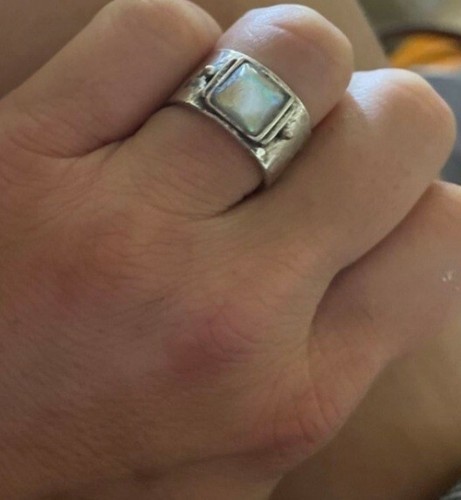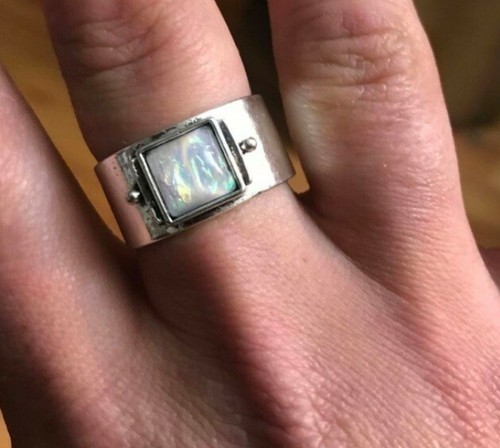 Square Silver w/Opal Gemstone ~ Women's Size 7 ~ Wide Band Ring