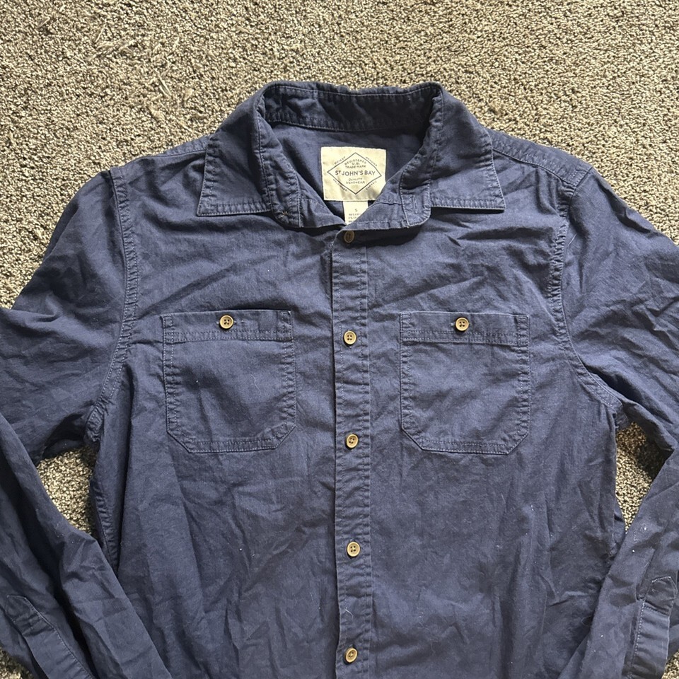 - St. John's Bay Shirt Mens (S) Small Long Sleeve Button Up Solid Blue