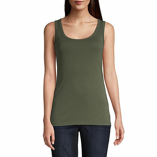 - St. John's Bay Women's Scoop Neck Tank Top Size Medium Oak Moss 100% Cotton